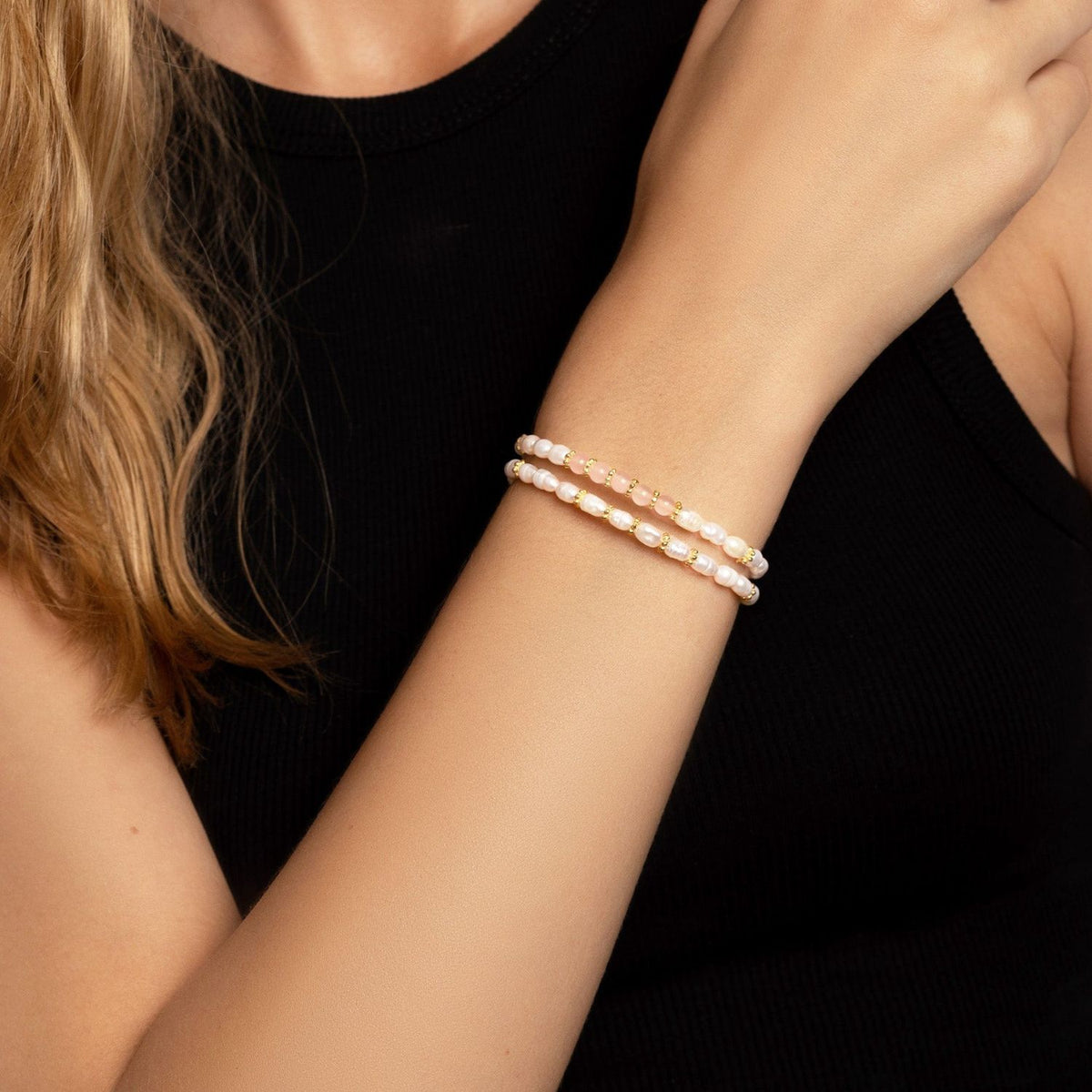 Women's Beaded Bracelet With Pearl And Pink Opal