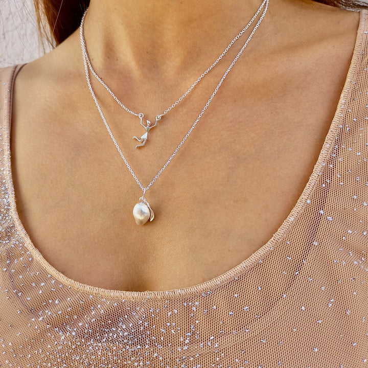 This Tribal Girl Necklace by Rize is a joyful and free-spirited piece based on the indigenous Warli art of India. The necklace features a dancing tribal girl figure, crafted from 100% recycled sterling silver, symbolizing a sense of wild freedom. Each piece is handmade by Fairtrade artisans, adding a layer of ethical beauty to its unique design. This necklace is not just an accessory; it is a celebration of cultural heritage and a testament to conscious style.