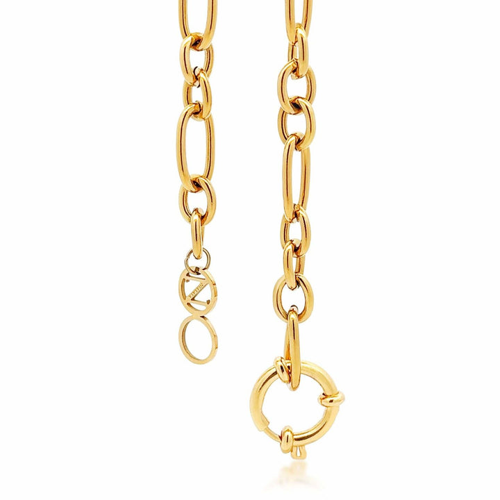 This Women's Gold Cable Choker With Chunky Heart Pendant by Nialaya is a stunning and sophisticated statement piece. This chunky chain necklace features a heart pendant with intricate detailing. It can be worn alone or layered with other necklaces for a more dynamic look. The lock and hardware are made of stainless steel with gold plating, ensuring durability and timeless charm.