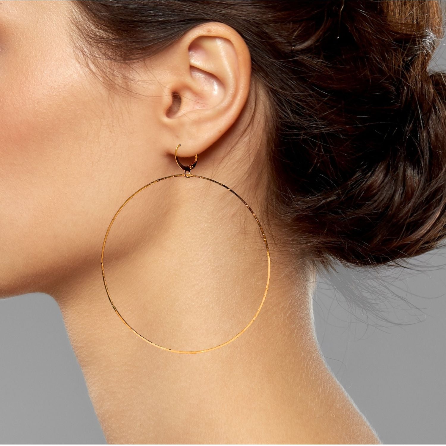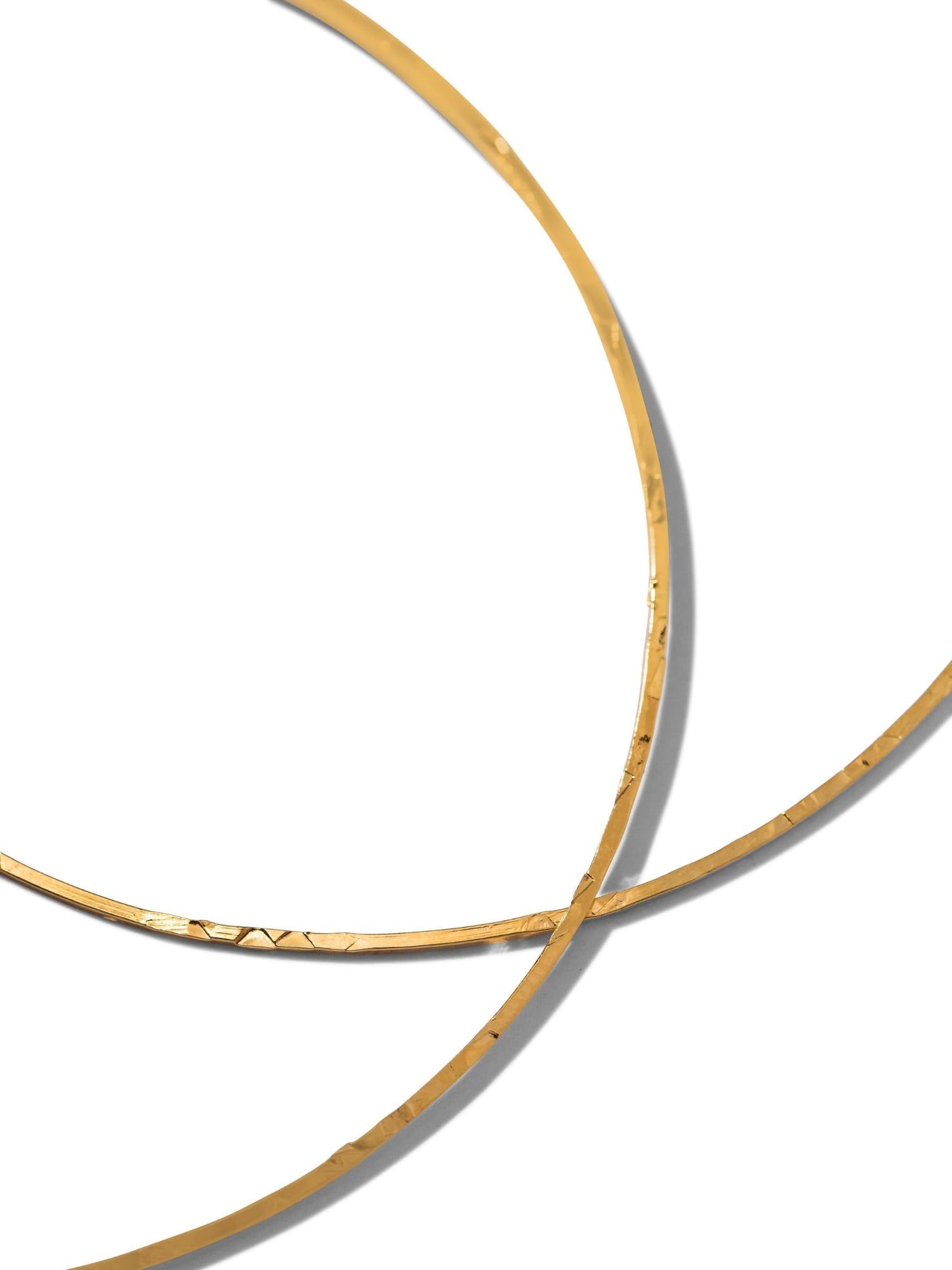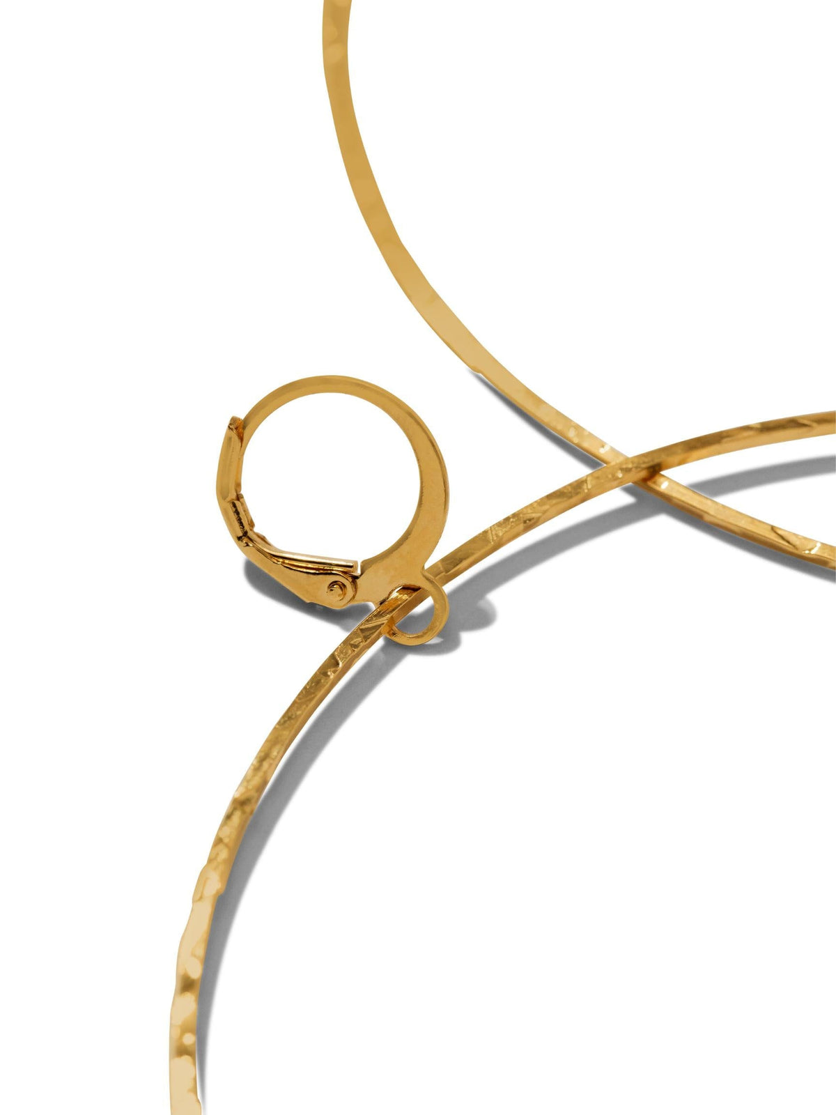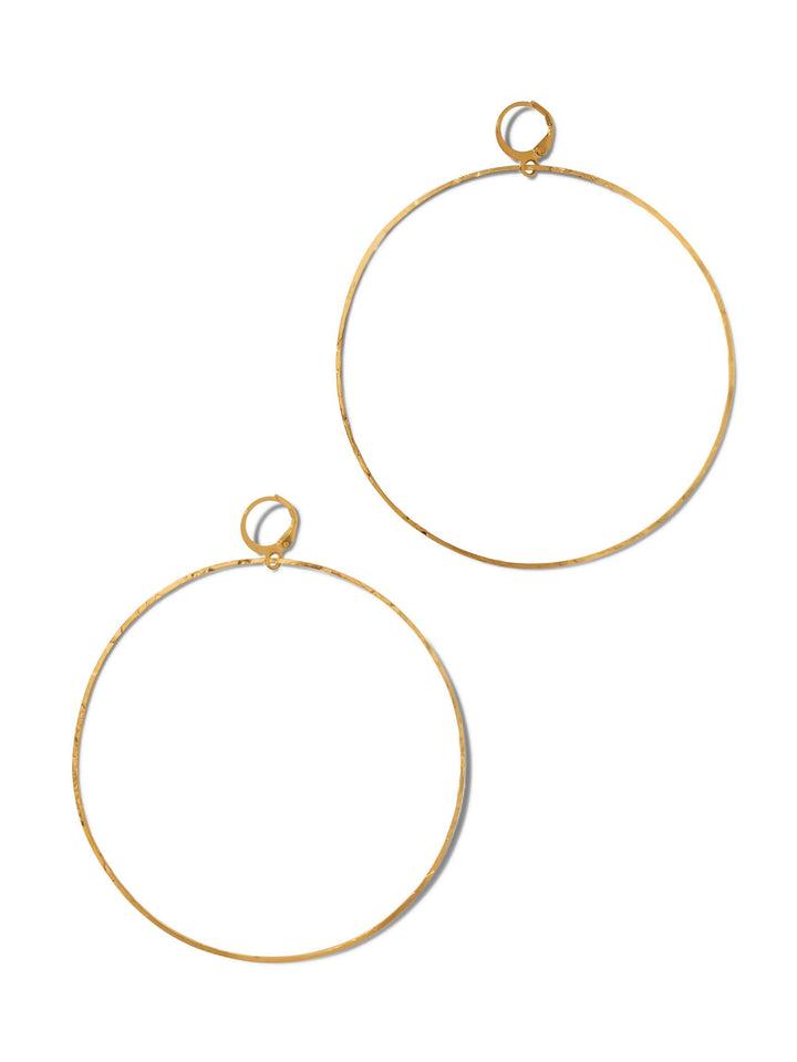 These earrings feature an ultra-thin, lightweight textured hoop. They are crafted from brass and plated in 18k gold, with a lever-back fastening.