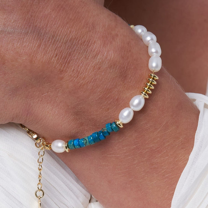 Nova Oval Cultured Freshwater Pearl Bracelet With Blue Jasper & Gold Beads