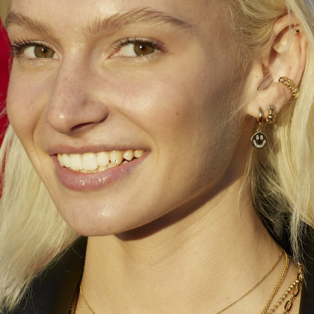Gold Smiley Face Charm Hoop Earrings
