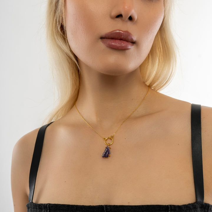 Raw Amethyst Gemstone Pendant Chain Link Gold Necklace