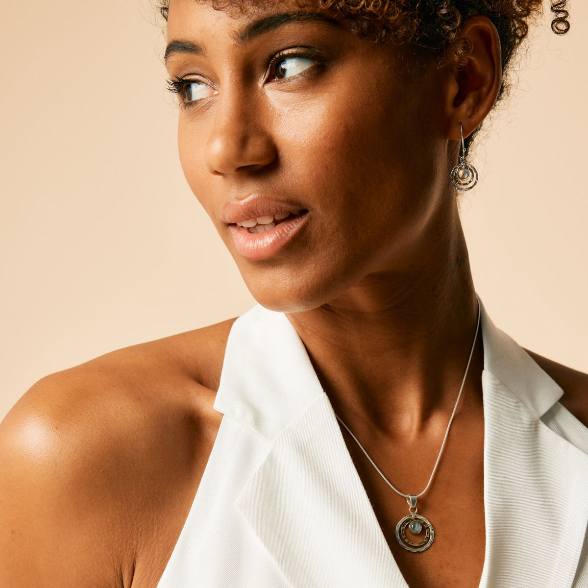 This Infinity Universe Silver Necklace with Moonstone by Charlotte’s Web Jewellery is inspired by the cosmos and its infinite mysteries. Handcrafted in sterling silver, the pendant is adorned with shimmering moonstone, June’s birthstone, symbolizing intuition and harmony. With no beginning or end, its infinity form makes it a meaningful gift for romance, commitment, or spiritual connection.