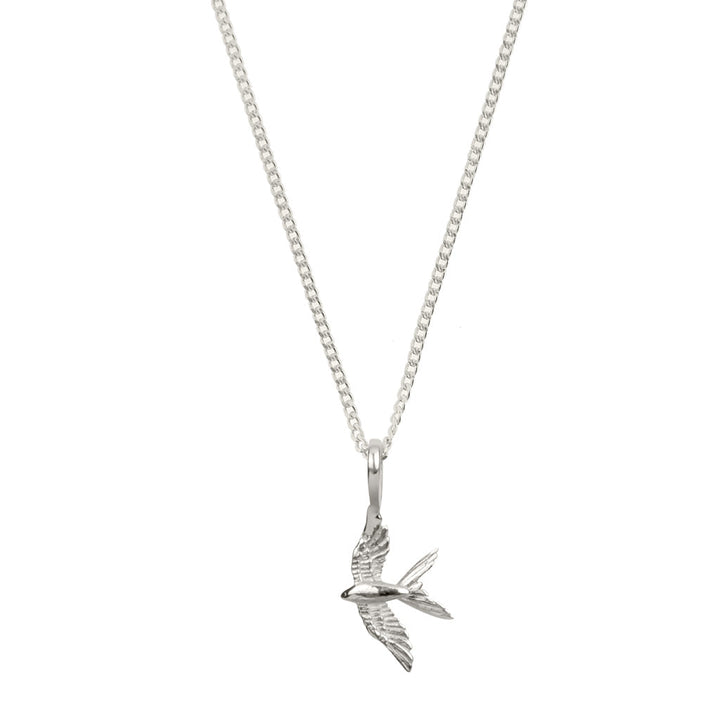 Handcrafted in recycled sterling silver. Pendant depicts swallow in flight. Available also in gold vermeil.