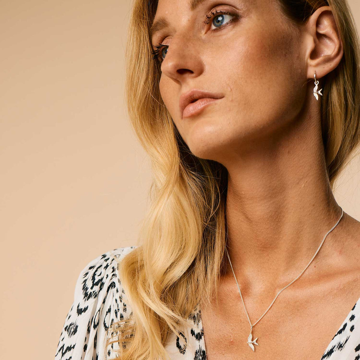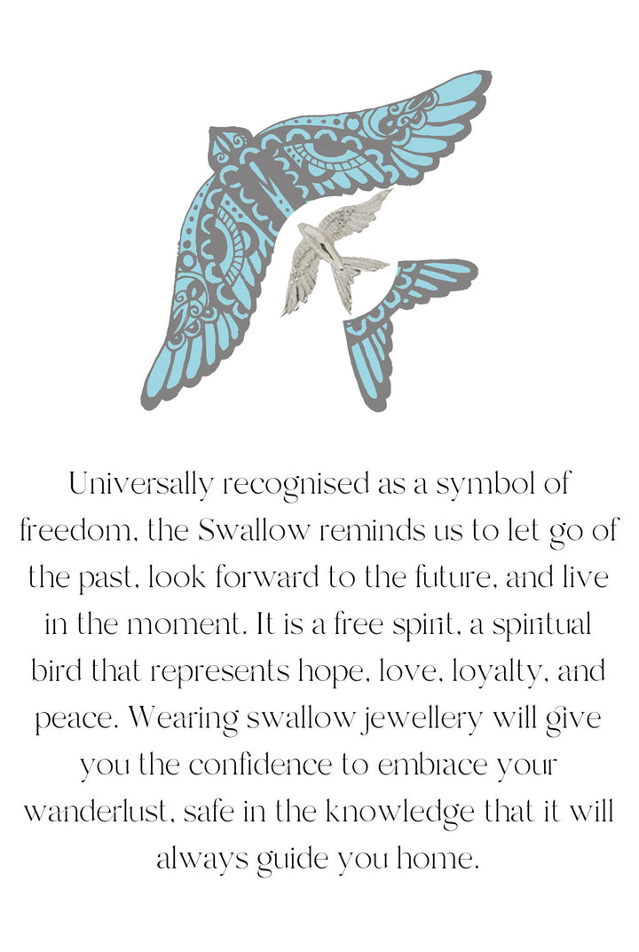 This Swallow in Flight Silver Necklace by Charlotte’s Web Jewellery is a timeless piece symbolizing freedom, hope, and new beginnings. The swallow, captured mid-flight, embodies grace and optimism, making it a meaningful keepsake for life’s journeys. Crafted from recycled silver, it carries both beauty and ethical craftsmanship.