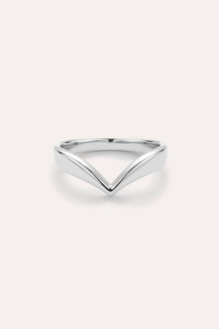 Veda Plain Chevron Ring In Silver