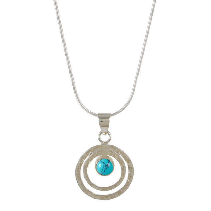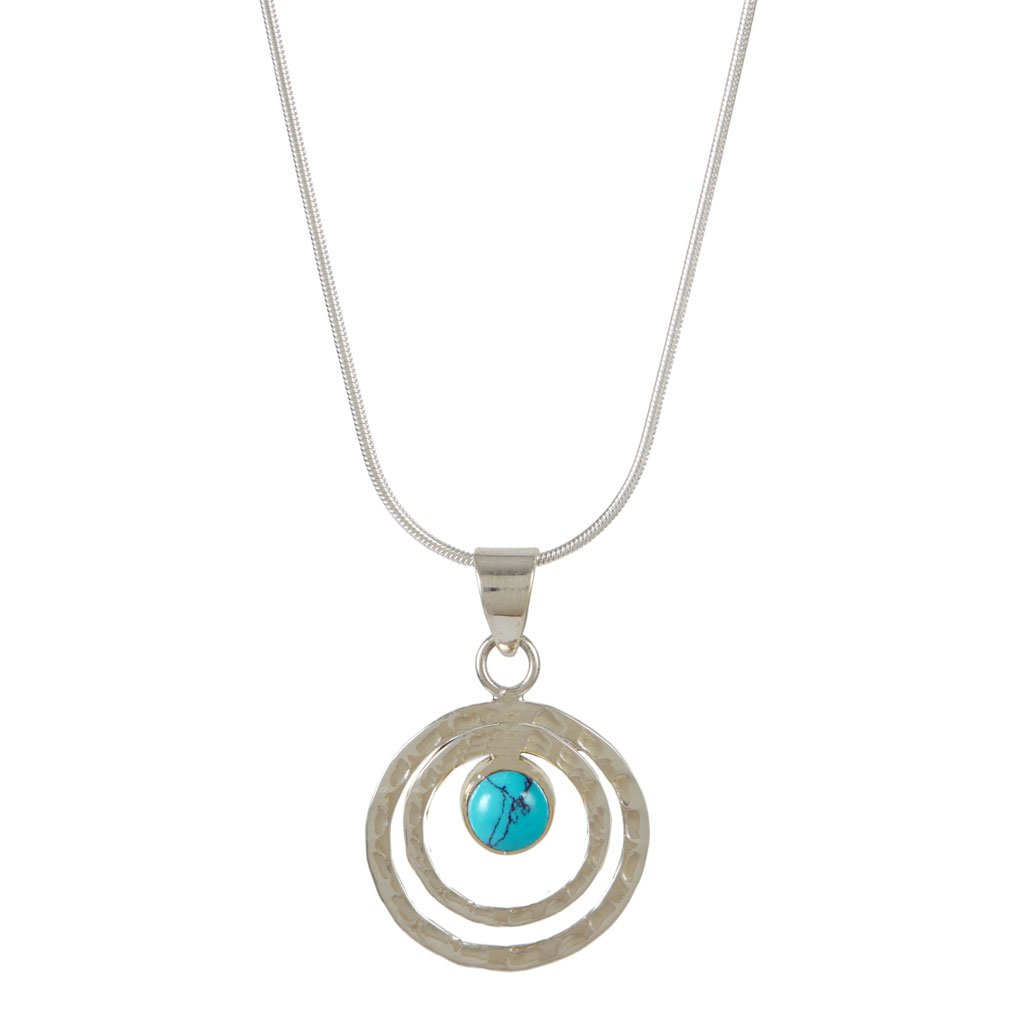 Handcrafted in sterling silver with turquoise gemstone. Suspended on a sterling silver snake chain.