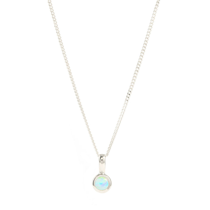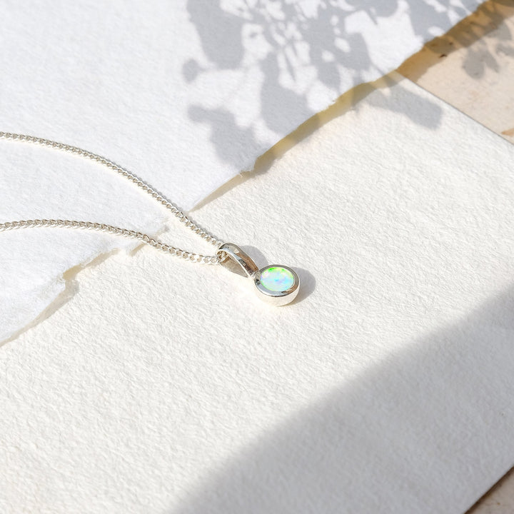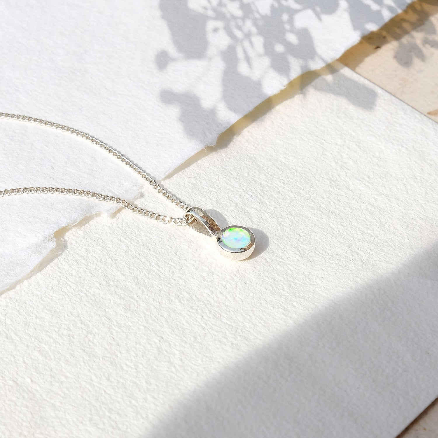Sterling silver pendant set with cabochon opal (5mm). Handmade. Also available in gold vermeil.