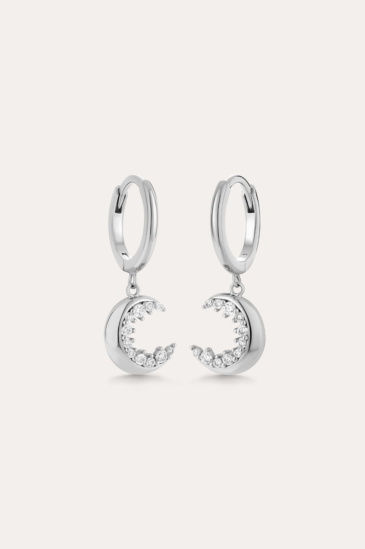 These hoop earrings are crafted from 92.5% pure sterling silver and are adorned with a crescent moon charm and 6A-rated cubic zirconia stones.