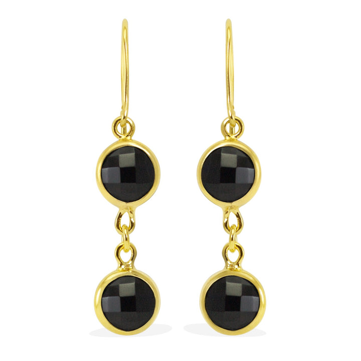 These earrings are handmade in Italy. They are crafted from 18K yellow gold over sterling silver with a 1-micron plating and are set with black onyx gemstones. The pieces are nickel-free.