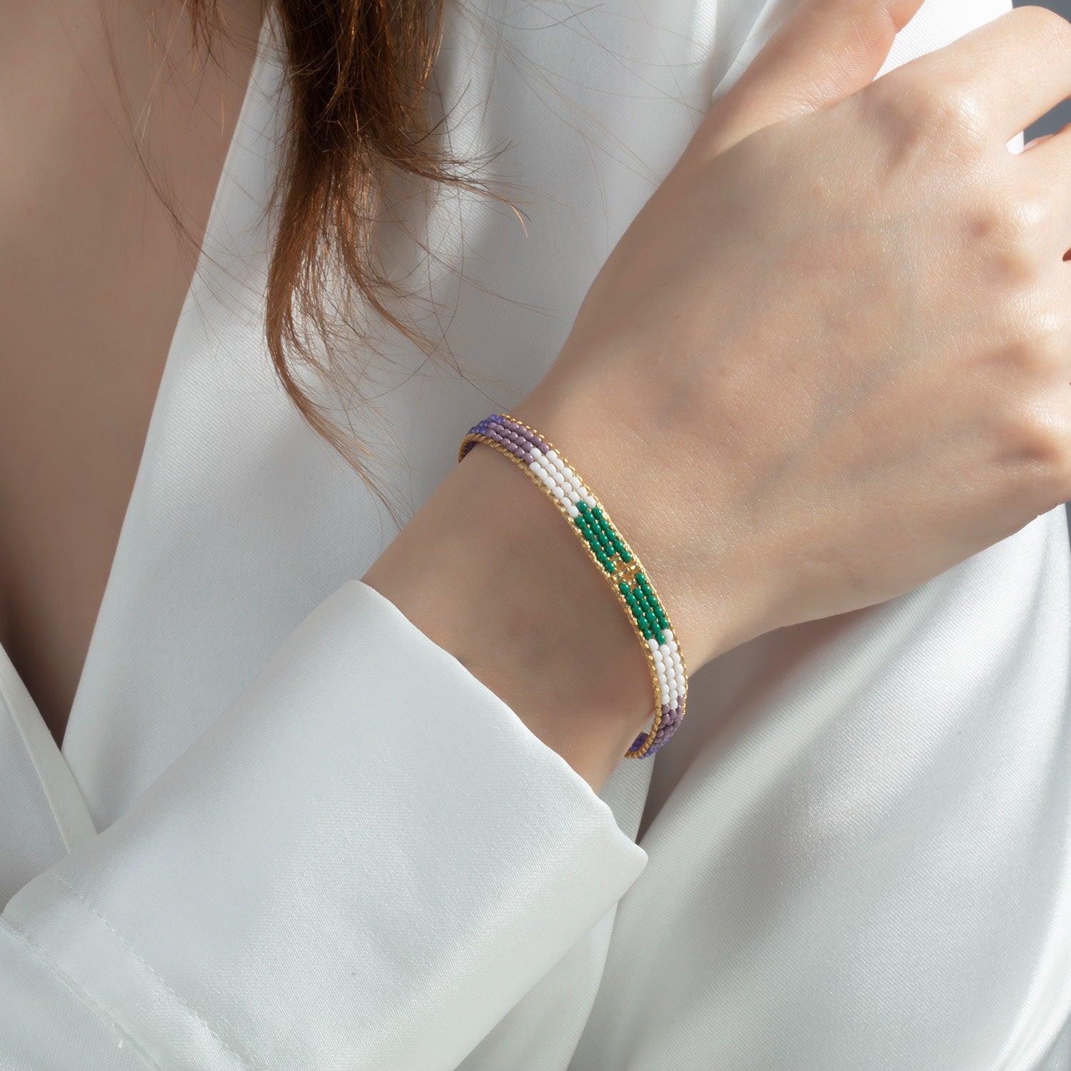 This Mia Beaded Bracelet - Green by Milou Jewelry is a light and comfortable accessory. Handwoven with tiny, high-quality glass beads, the result is a smooth and delicate bracelet that is comfortable for everyday wear. The beautiful green color adds a refreshing touch to your style, making it a perfect piece for adding a pop of color to your daily look.