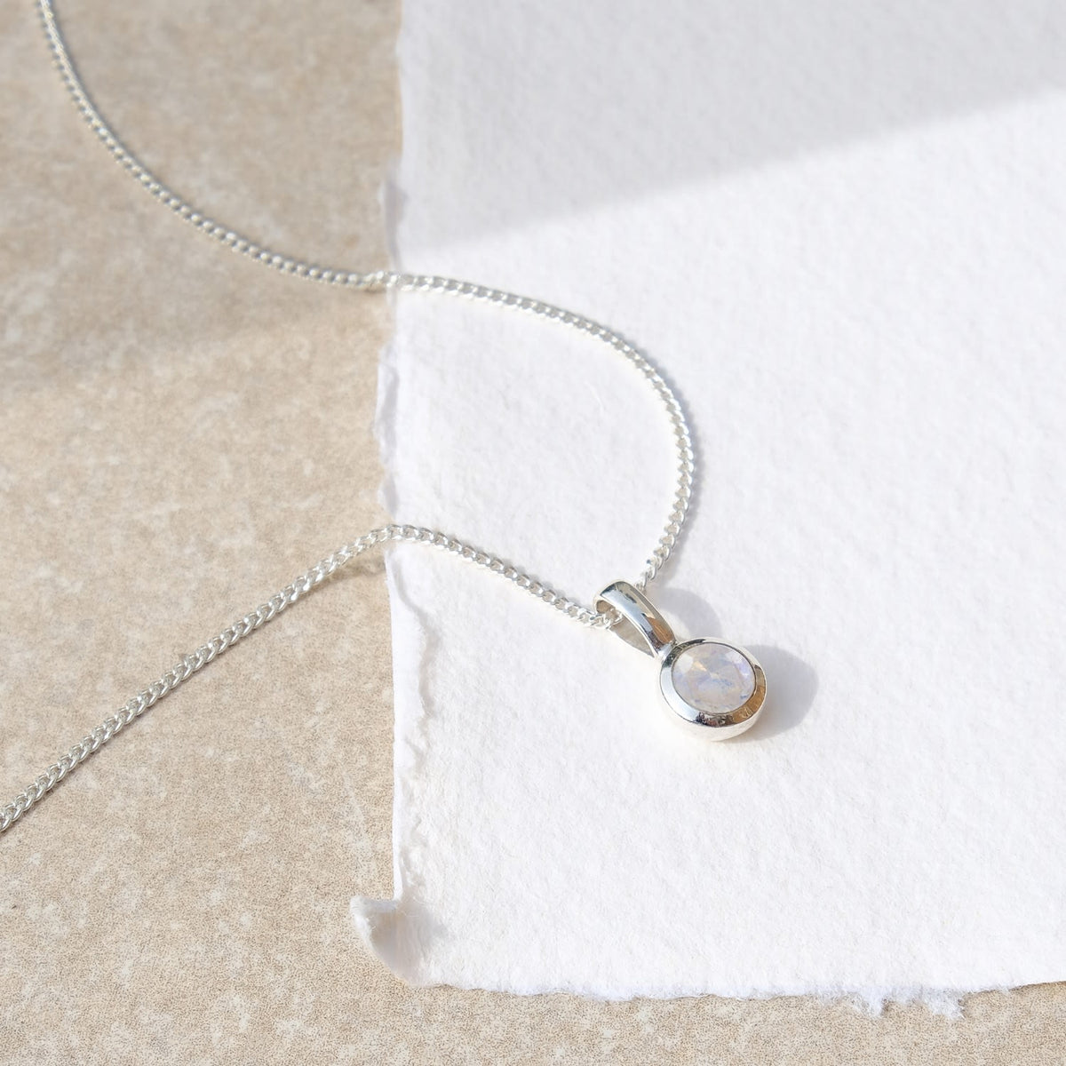This June Birthstone Charm Silver Necklace - Moonstone by Charlotte’s Web Jewellery captures the mystical glow of moonstone, a gem of calm and feminine energy. Known as the stone of balance and peace, it makes an exquisite gift for June-borns or anyone drawn to its soothing beauty. The pendant’s timeless design allows it to be treasured and personalised for years to come.