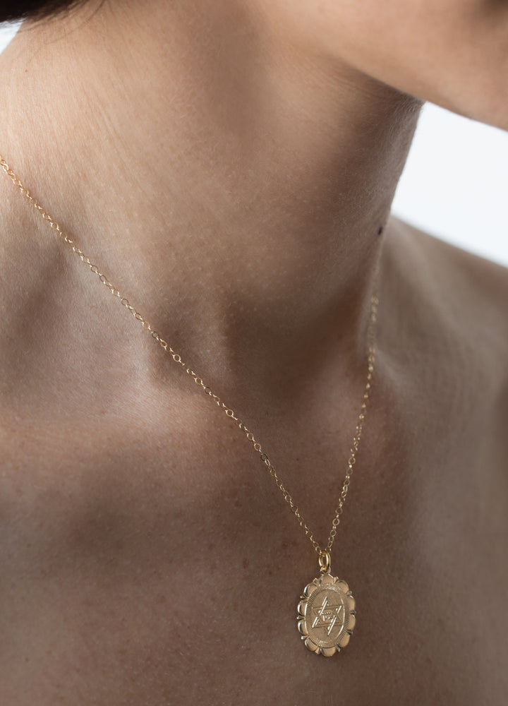 This Star of David Charm Necklace by Outofoffice is an exquisite piece that blends spiritual meaning with a modern, minimalist aesthetic. Crafted from 18k gold-filled material, the necklace features a high-polish Star of David charm with a barely-there look. Its delicate design makes it perfect for layering with other necklaces, allowing you to create a sophisticated and personal style. This piece is a beautiful symbol of faith and elegance, designed to be an effortlessly wearable and cherished staple in your jewelry collection.