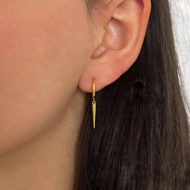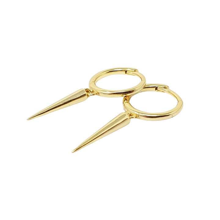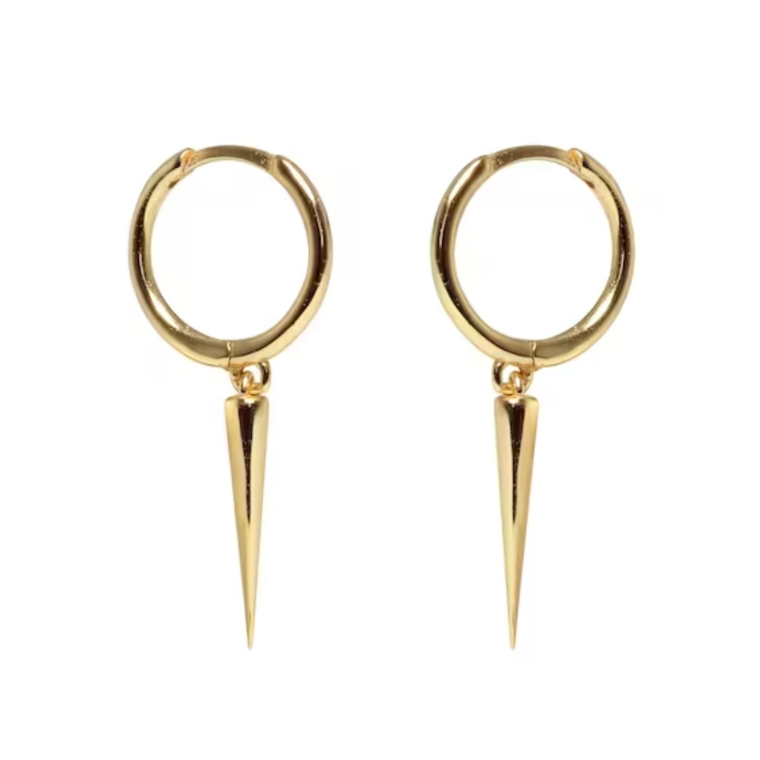 These huggie hoop earrings are crafted from gold-plated materials and feature a dainty spike design.