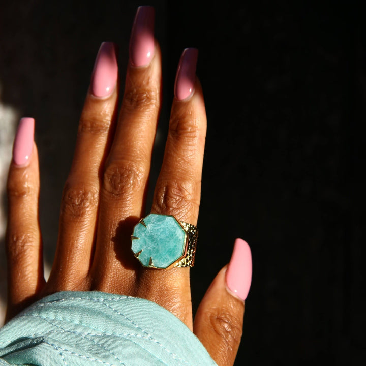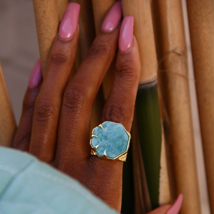 Hold On Amazonite Gemstone Gold Adjustable Statement Ring