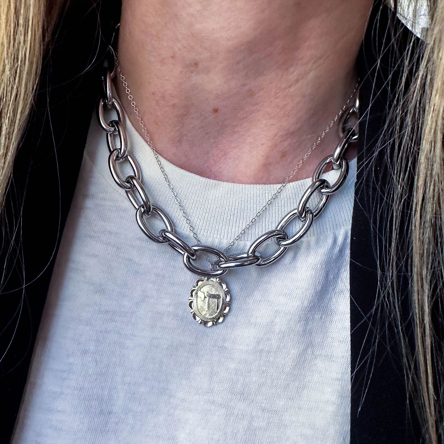 Silver Chai Charm Pendant Chain Necklace Hebrew Jewish