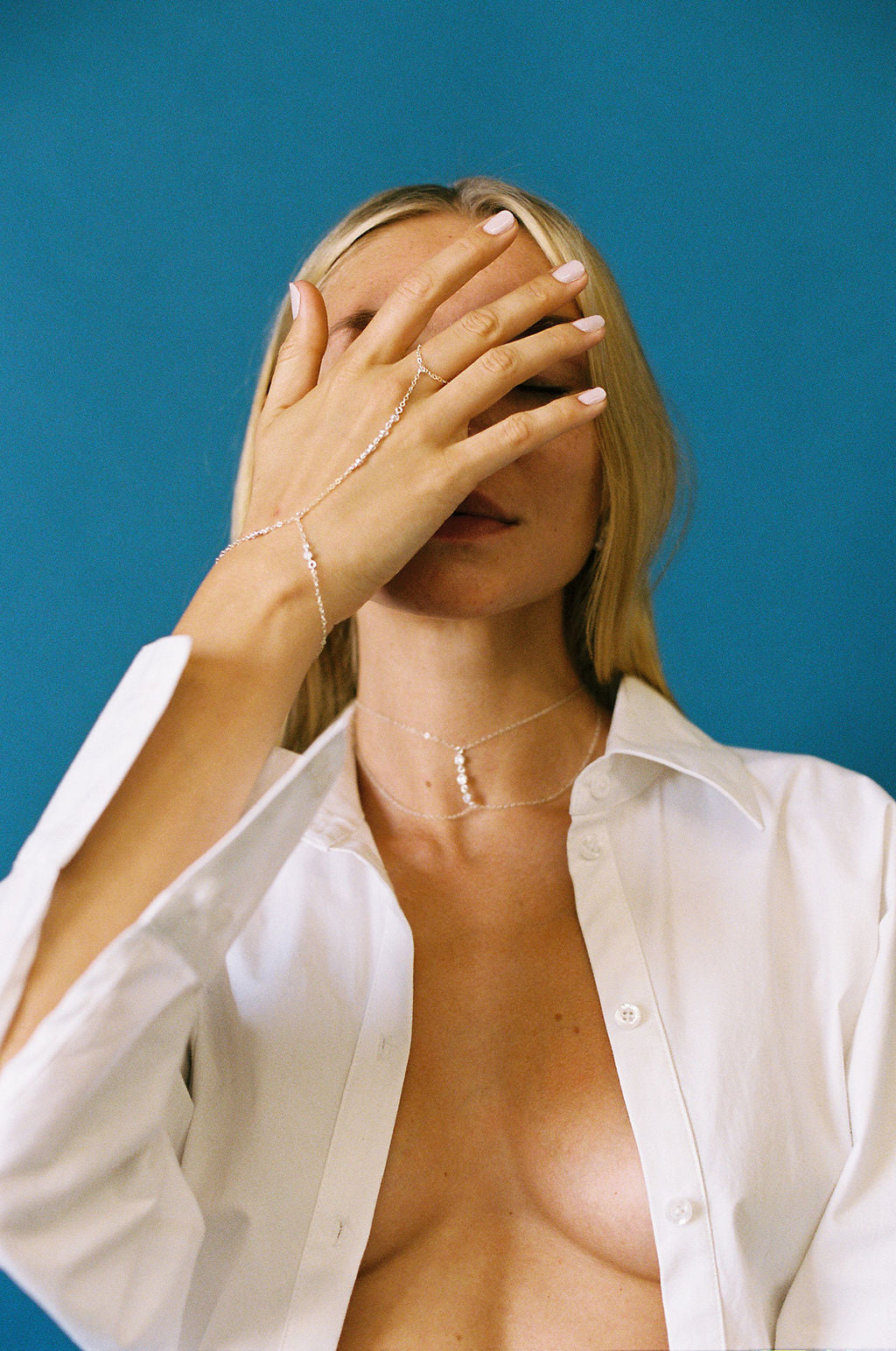 This Daniela Silver Hand Chain by Naiia is a delicate accessory with the perfect amount of sparkle for everyday wear. Handcrafted from a delicate sterling silver chain, it features bezeled white cubic zirconia gemstones. The adjustable chain ensures a perfect fit. This hypoallergenic piece is handmade with love and is designed to be water resistant.