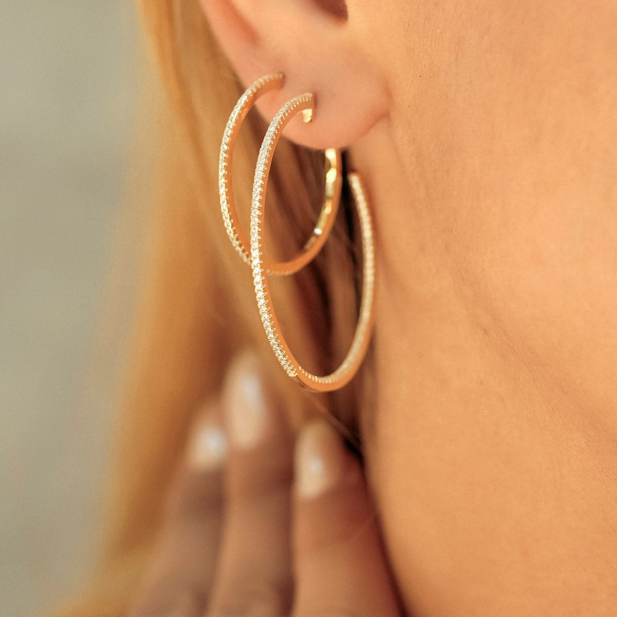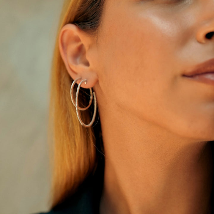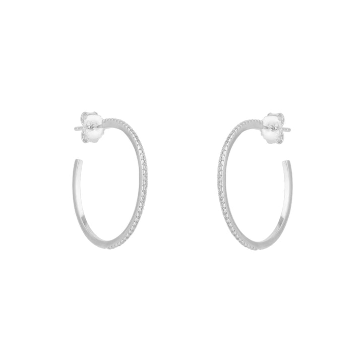 These Sterling Silver Stud Hoop Earrings by Spero London are a modern upgrade to a classic silhouette, offering a blend of polished style and subtle glamour. Crafted from high-quality sterling silver, these large hoops are not only stylish but also durable. What sets them apart is the touch of elegance provided by the interior gemstones, which add a hint of sparkle and a unique design detail. They are perfect for making a stylish statement and adding a sophisticated, eye-catching element to any outfit.