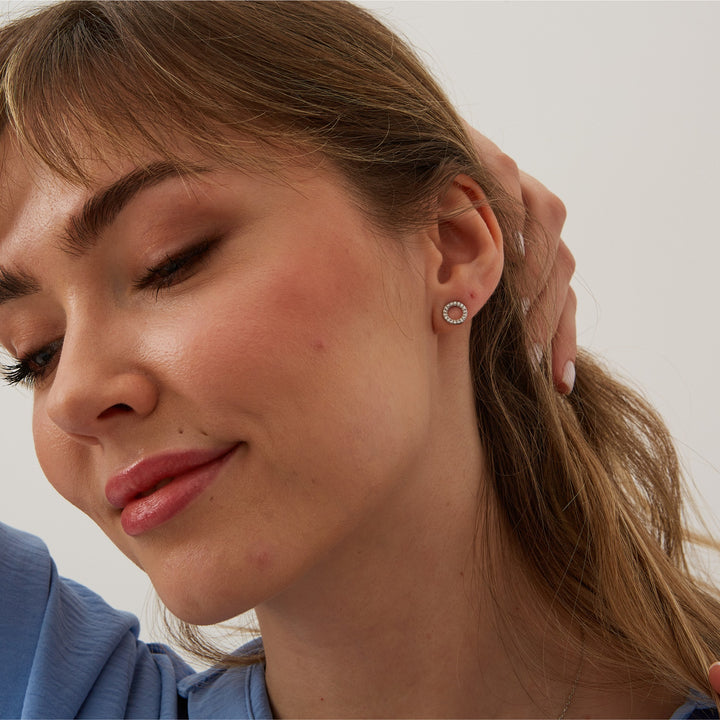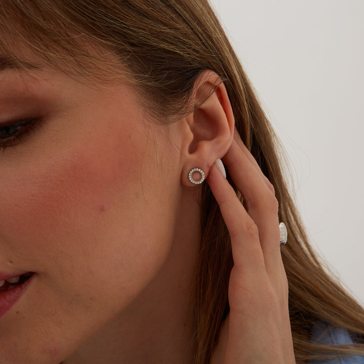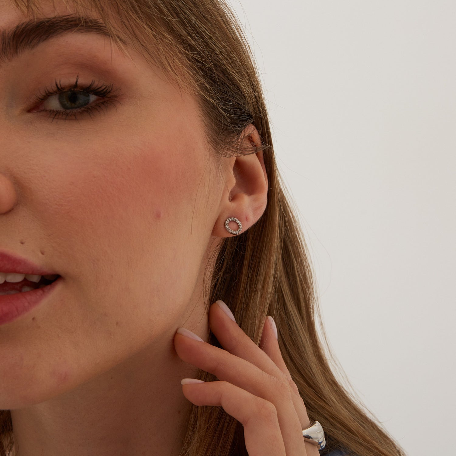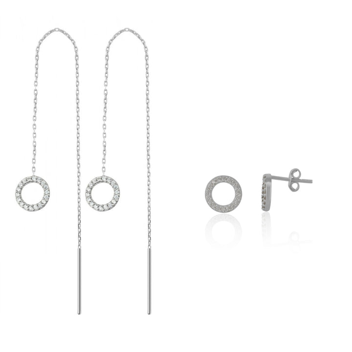 Circle Round One Drop One Stud Earring Sterling Silver Set