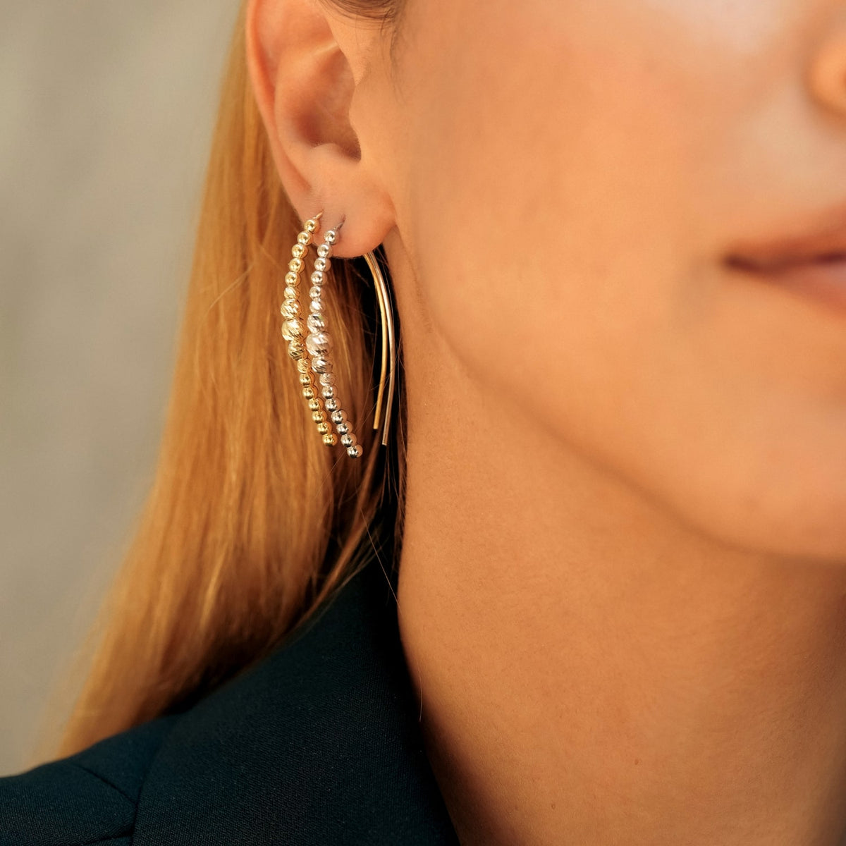 Beaded Pull Through Sterling Silver Earrings - Silver