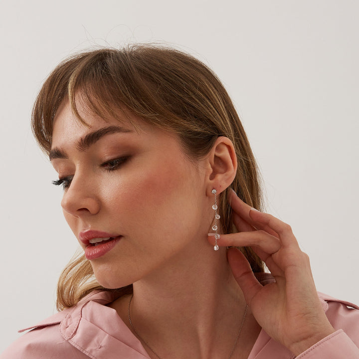 Drop Crystal Sterling Silver Earring - Silver