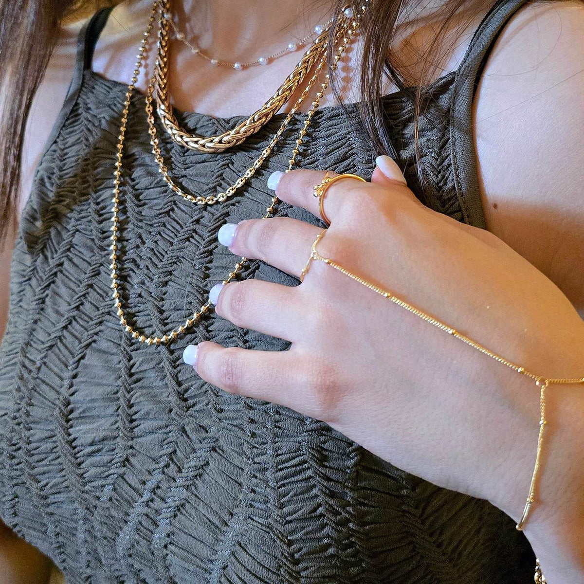Dainty Beaded Link Chain Gold Plated Bracelet And Ring