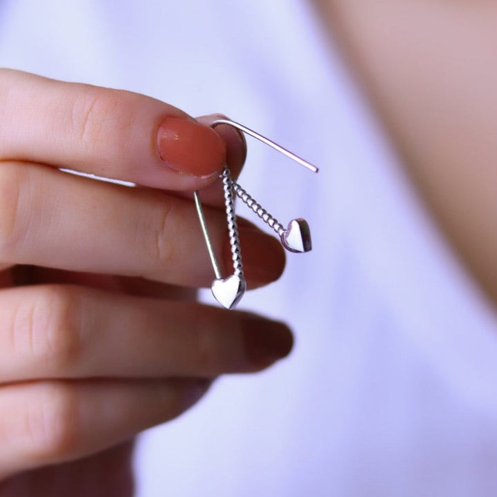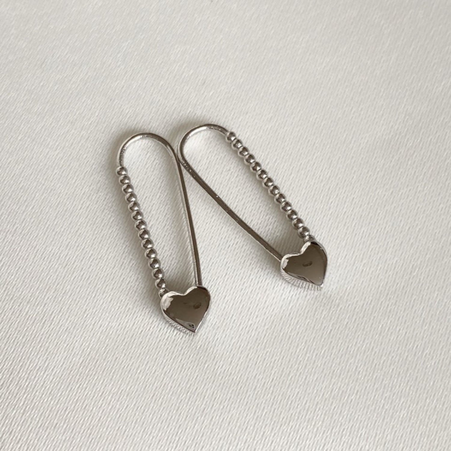 Heart Beaded Safety Pin Sterling Silver Earring - Silver