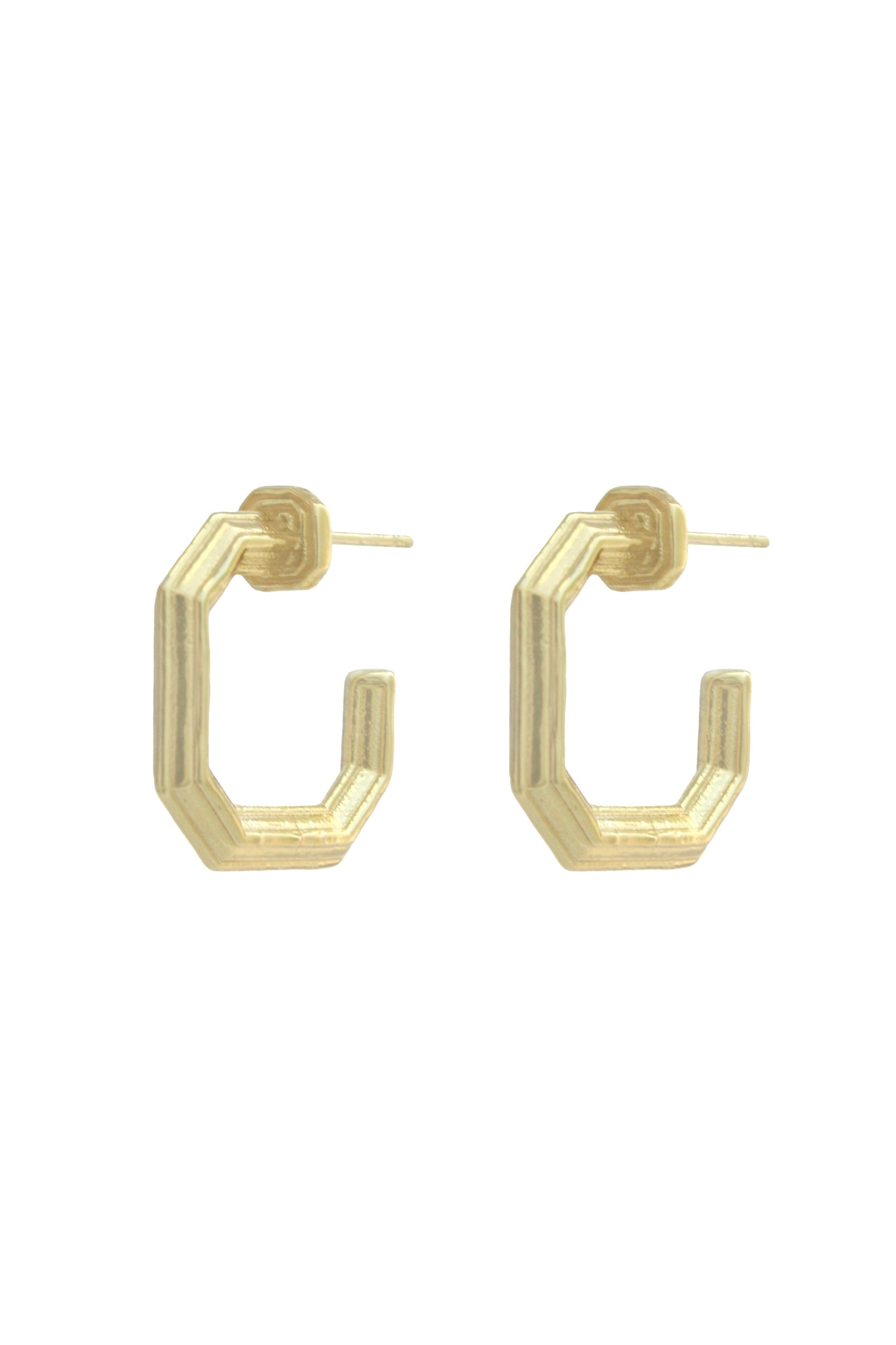 Handmade in Brazil. 18k gold-plated textured hoops, ¾-inch length.
