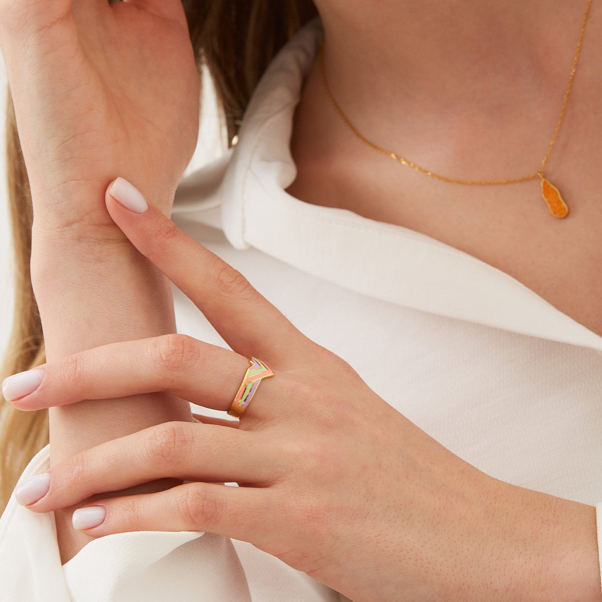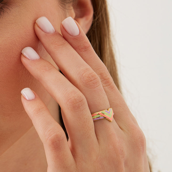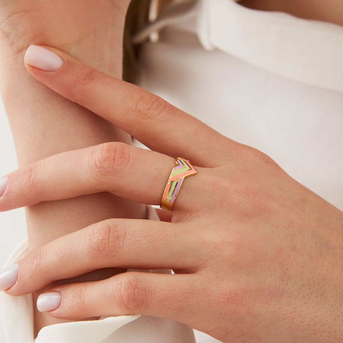 Enamel Pink Four Color Sterling Silver Arrow Band Ring