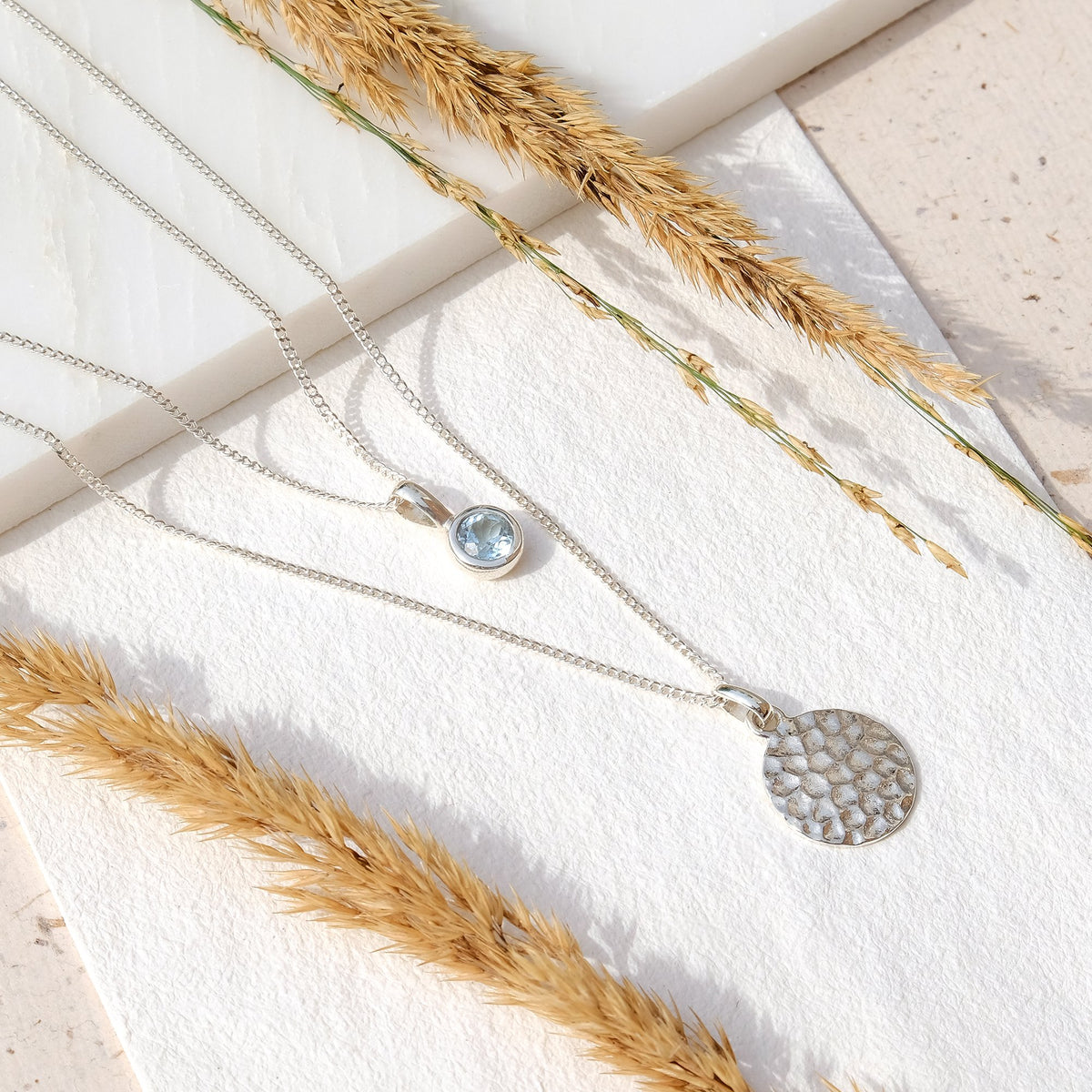 This November Birthstone Charm Silver Necklace - Blue Topaz by Charlotte's Web Jewellery is a personalized keepsake brimming with meaning. The brilliant blue topaz, symbolizing love, peace, and intelligence, is set in a sterling silver pendant for a look that is both timeless and elegant. A perfect gift for November birthdays or for those wishing to harness the calming energy of topaz.