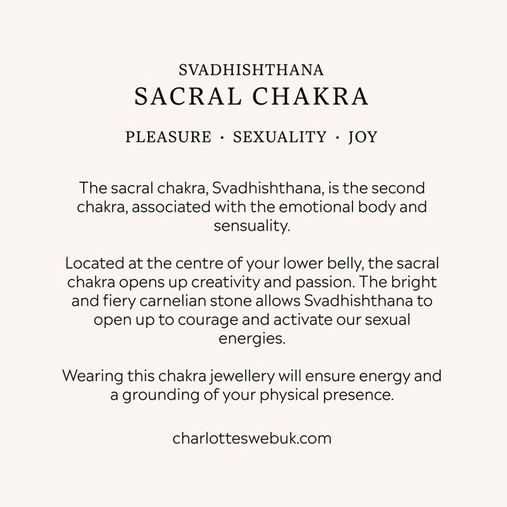 This Sacral Chakra Silver Ring - Carnelian by Charlotte's Web Jewellery is a spiritual talisman designed to awaken Svadhishthana, the sacral chakra. Its lotus petal-inspired design cradles a single carnelian gemstone, revered for igniting creativity, courage, and sensuality. Worn as a symbol of vitality and emotional connection, this ring helps align inner energy while adding a touch of bohemian sophistication. Perfect for meditation or everyday adornment, it bridges the worlds of spirituality and style in one captivating piece.