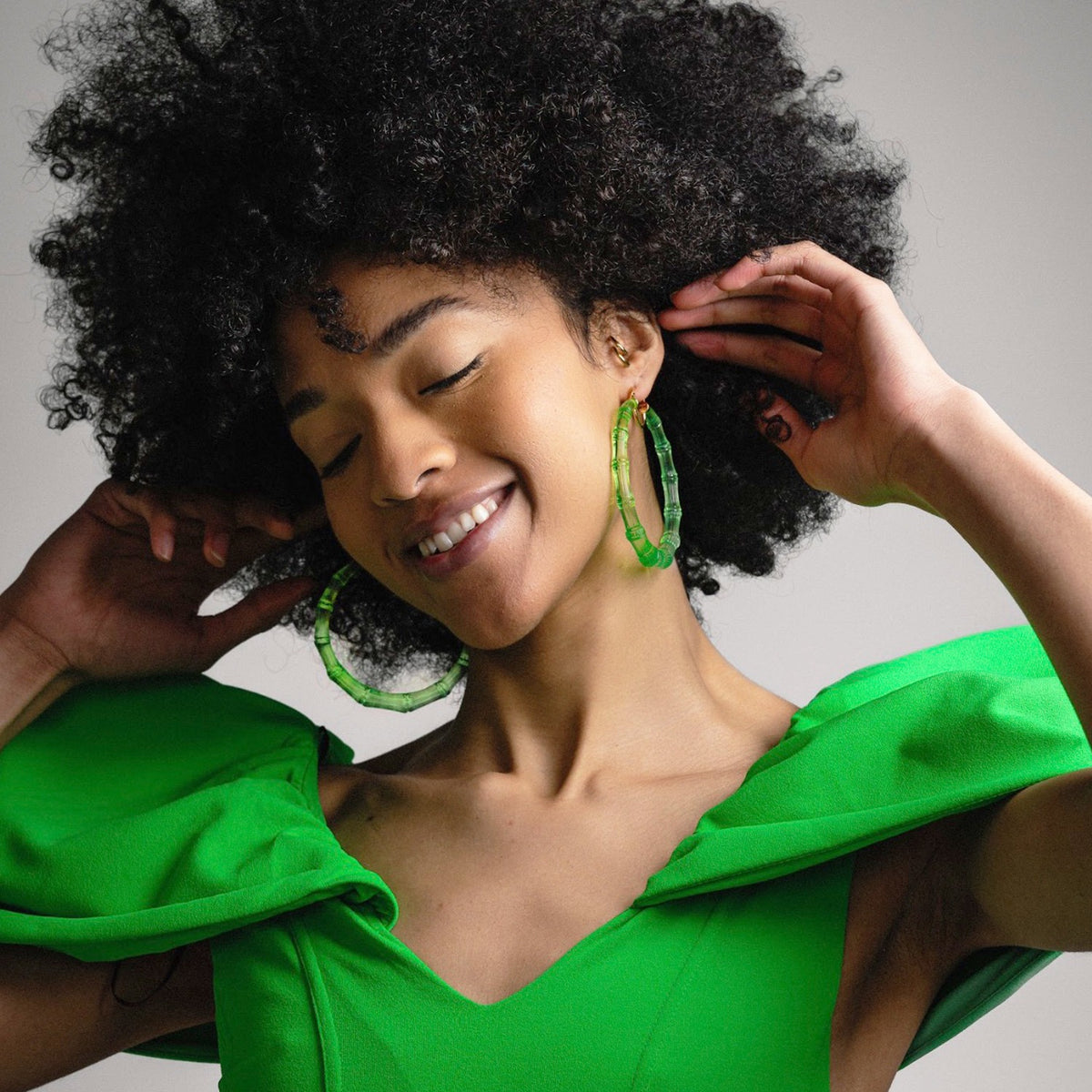 Xl Bamboo Hoop Earrings In Lime Green
