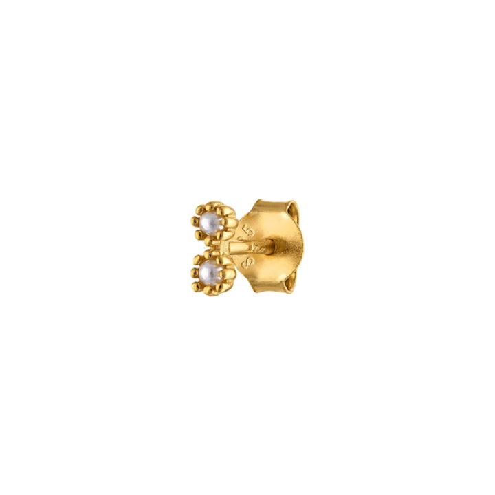 Three Flower Climber Gold Earring Stud Set Pearl Paves