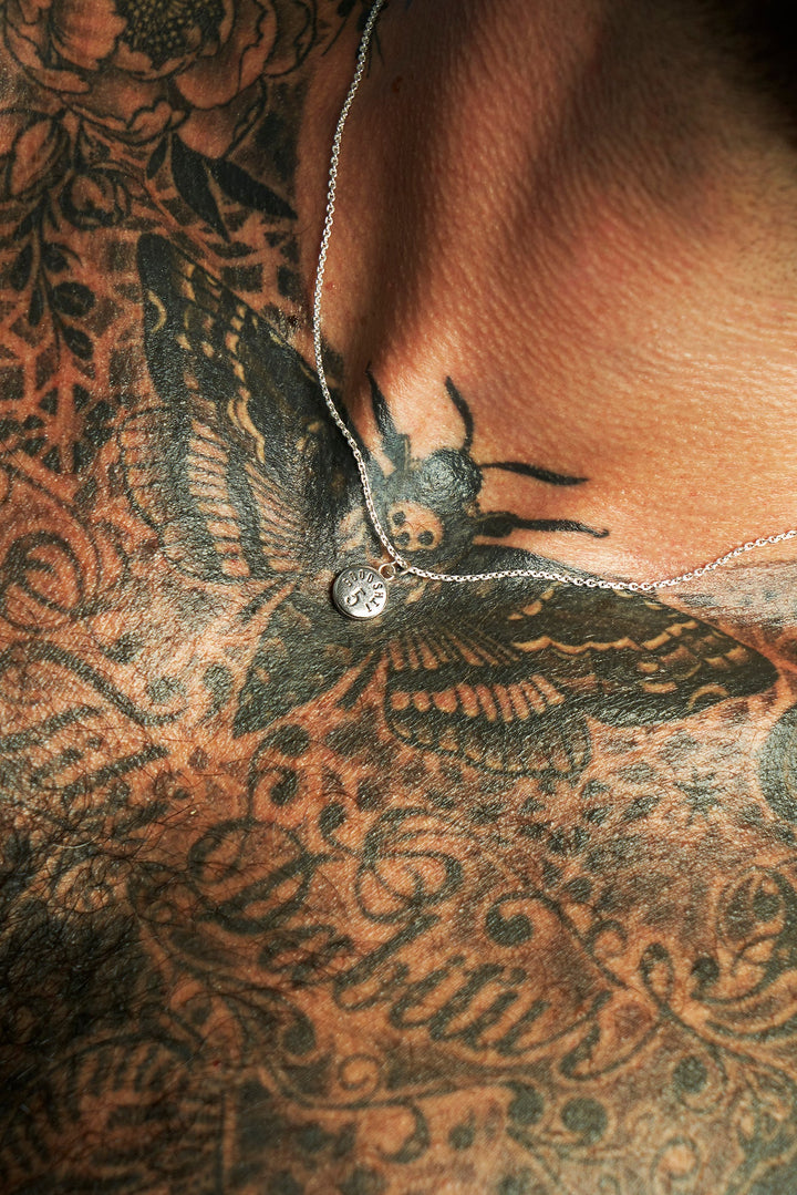The "Goodshit" Percocet Pill Necklace by Cartography is an edgy and unique statement piece. It features a polished sterling silver pendant in the shape of a Percocet pill, on a cable chain. The design is bold and provocative, perfect for those who want to express a rebellious and unconventional style. It’s crafted in NYC using Italian sterling silver and ethically sourced materials.