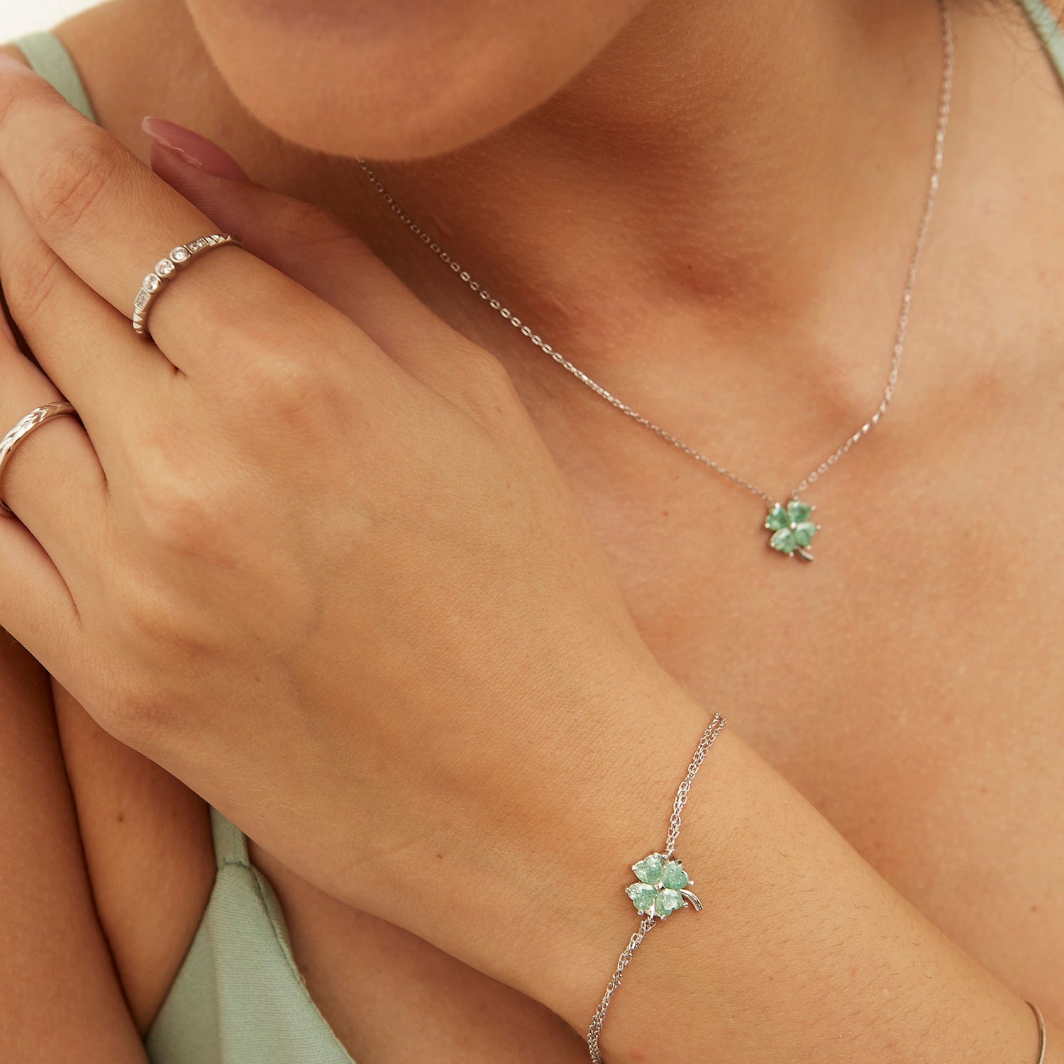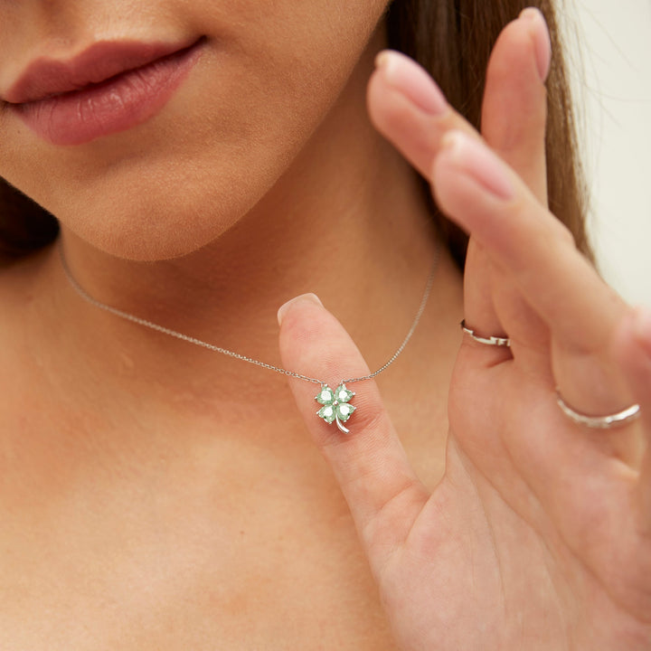 Four Leaf Clover Sterling Silver Necklace - Emerald Color - Silver