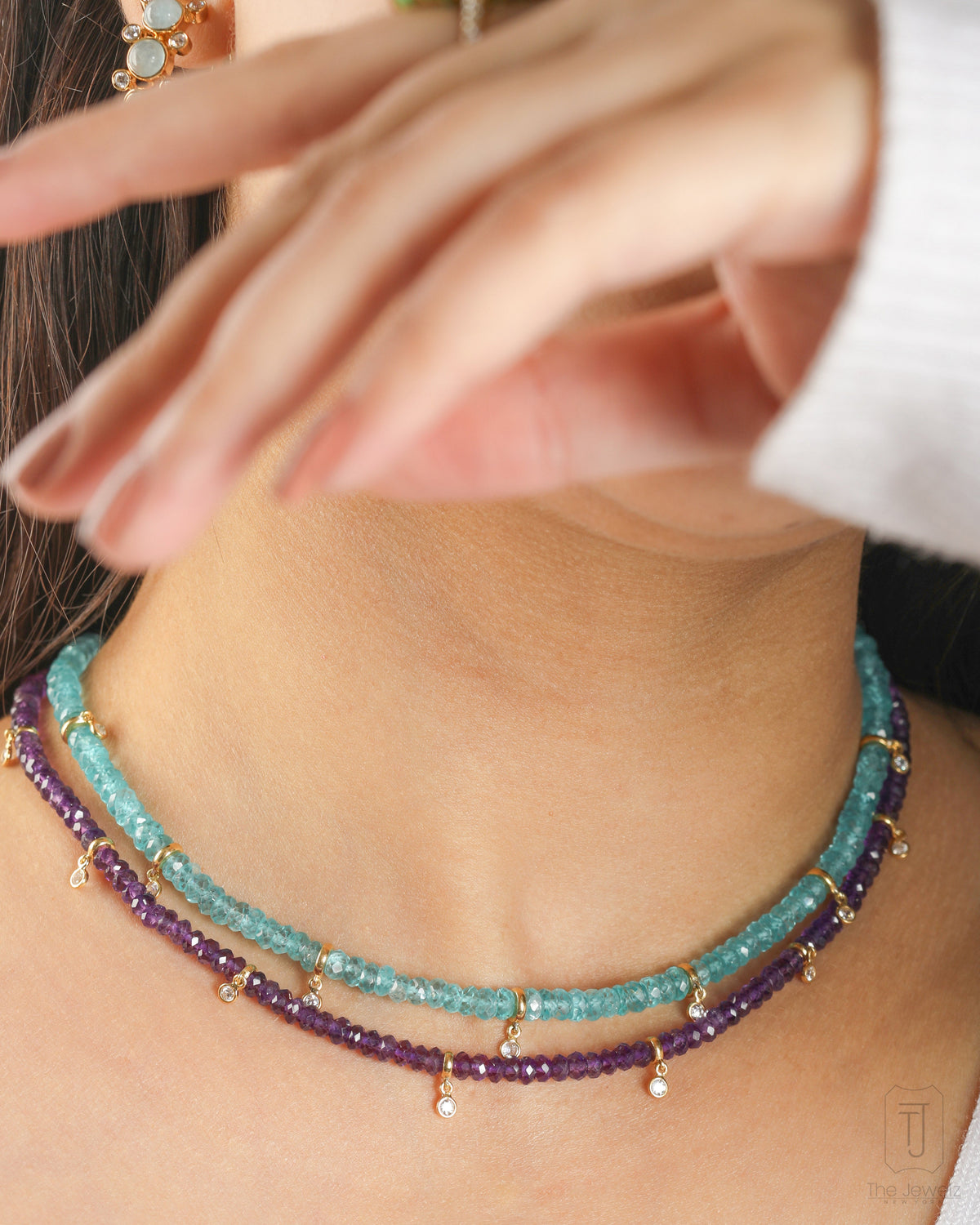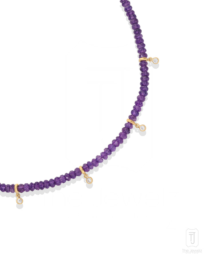 This Beach & Amethyst Beads Silver Necklace For Women by The Jewelz is a unique and captivating accessory that captures the serene beauty of the ocean. This necklace features shimmering amethyst beads that cascade like whispers of underwater wonder. It's like capturing the cool embrace of the ocean and the sun-drenched serenity of a hidden cove in one breathtaking piece. This necklace is a silent statement piece that adds a touch of bohemian royalty or beachy magic to any look.