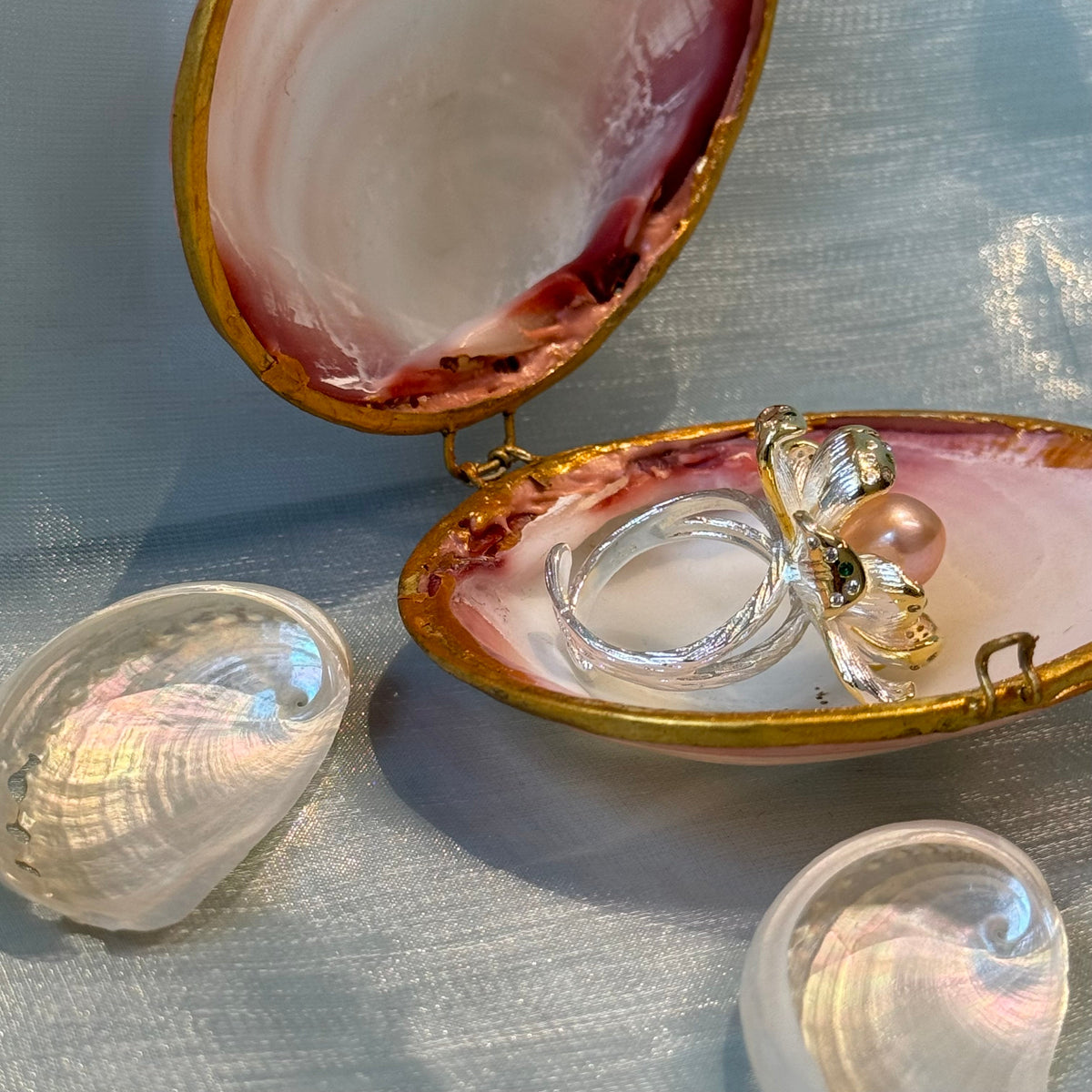 Magnolia Blossom Pink Pearl Silver Ring