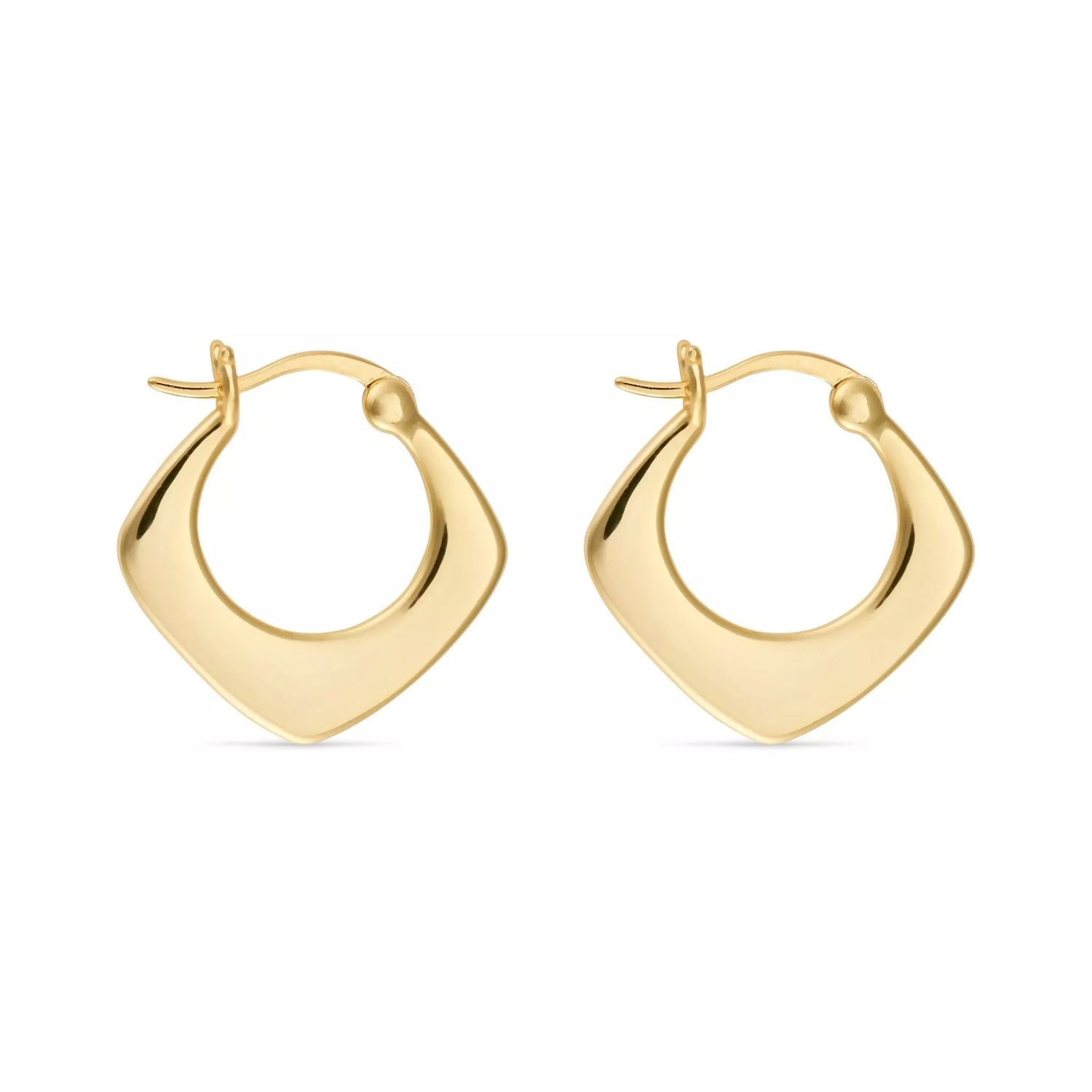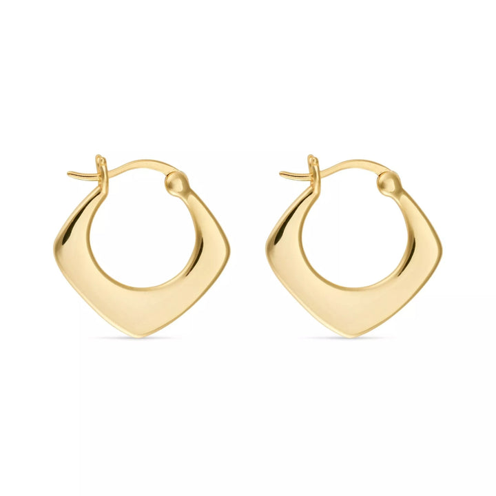 These Small Gold Geometric Hoops by Elk & Bloom are perfect for anyone that wants a little sparkle with a modern, clean-lined twist. Crafted from solid sterling silver and coated in genuine 18k gold plating, they are both durable and luxurious. The small, smooth square hoop design gives them a unique architectural feel, while the latch closure ensures a secure fit. These hoops are an ideal gift and a sophisticated addition to any jewelry collection.