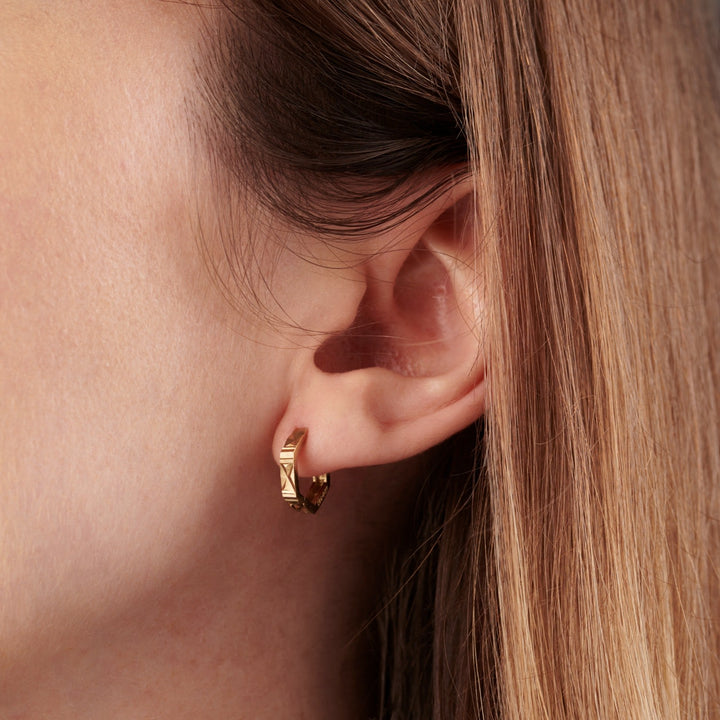 These Sterling Silver Faceted Hexagon Huggie Earrings by Posh Totty Designs offer a unique and modern twist on a popular style. Crafted from beautiful 925 sterling silver, their geometric hexagonal shape is given a faceted finish that catches the light from every direction, creating a brilliant sparkle. These earrings are the perfect gift for someone who loves to dazzle, adding a touch of modern glam to any day. They are a perfect blend of minimalist design and radiant charm.