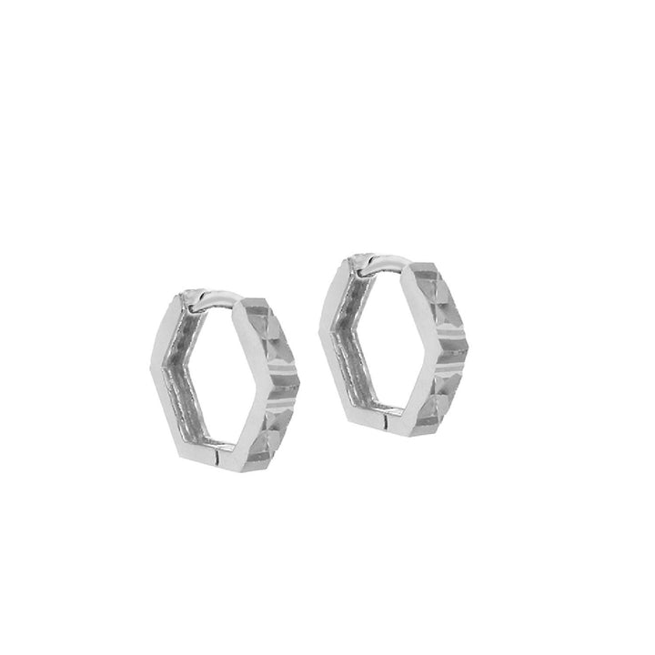 Sterling Silver Faceted Hexagon Huggie Earrings
