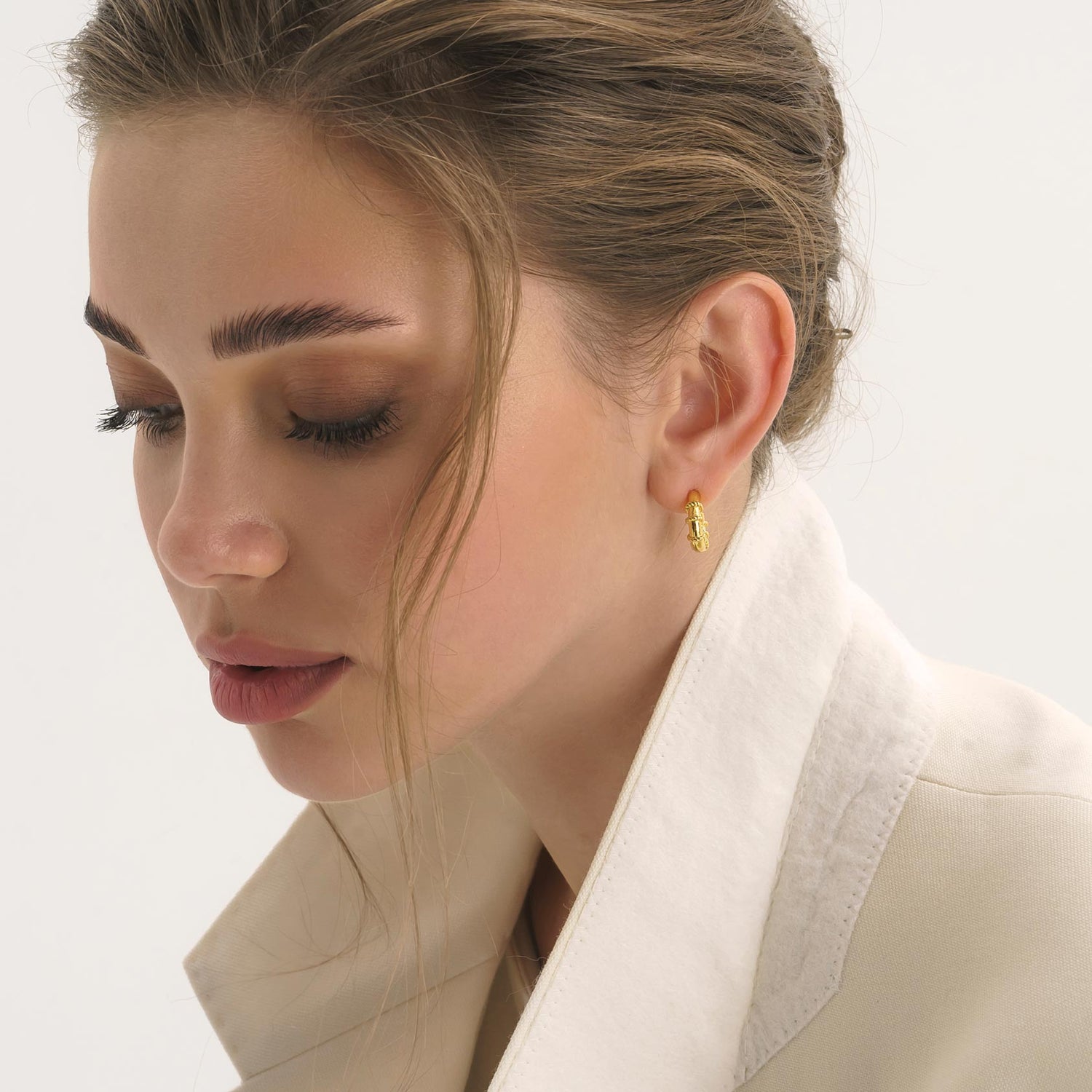 These Chunky Gold Rope Huggie Hoop Earrings by Elk & Bloom are a bold everyday essential. Their rope-inspired texture adds edge and charm, while the huggie style ensures a close, comfortable fit. Designed to strike the balance between statement and simplicity, they’re versatile enough for daily wear or layering.