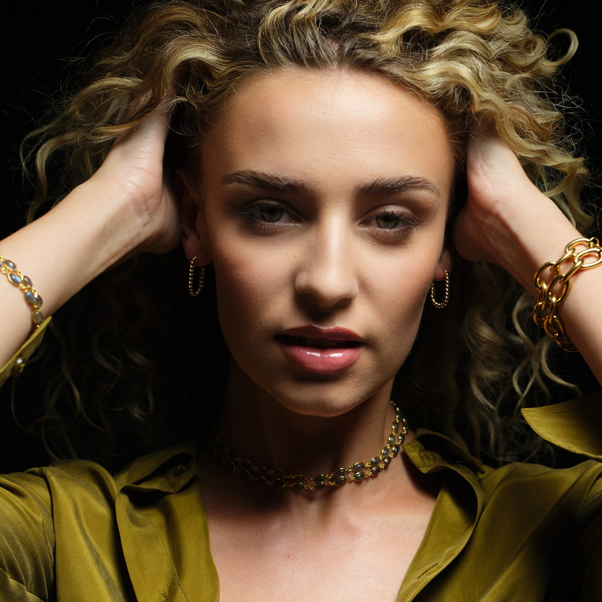 Crafted in recycled brass with 14k recycled gold plating. Each piece is handmade, with natural variations.