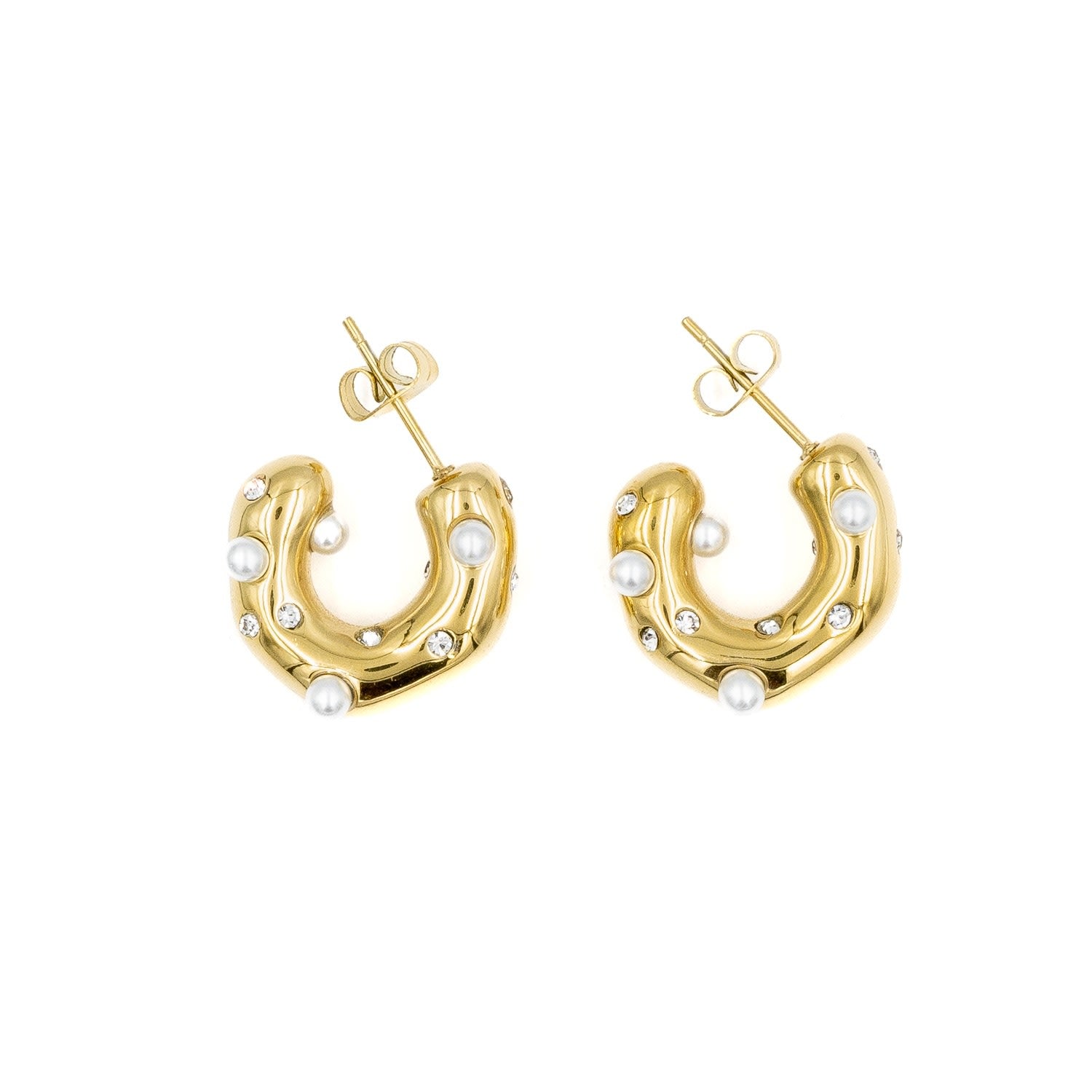 These Gold Pearl Gemstone Earrings by Superdivajewellery are a beautiful and versatile accessory. Crafted carefully to create a unique hoop with a butterfly back, these earrings feature pearls and gemstones. They can be styled beautifully on their own or doubled up with other earrings. Made from 18k gold stainless steel, they are tarnish-free, lead-free, and nickel-free, making them a safe and stylish addition to your collection.
