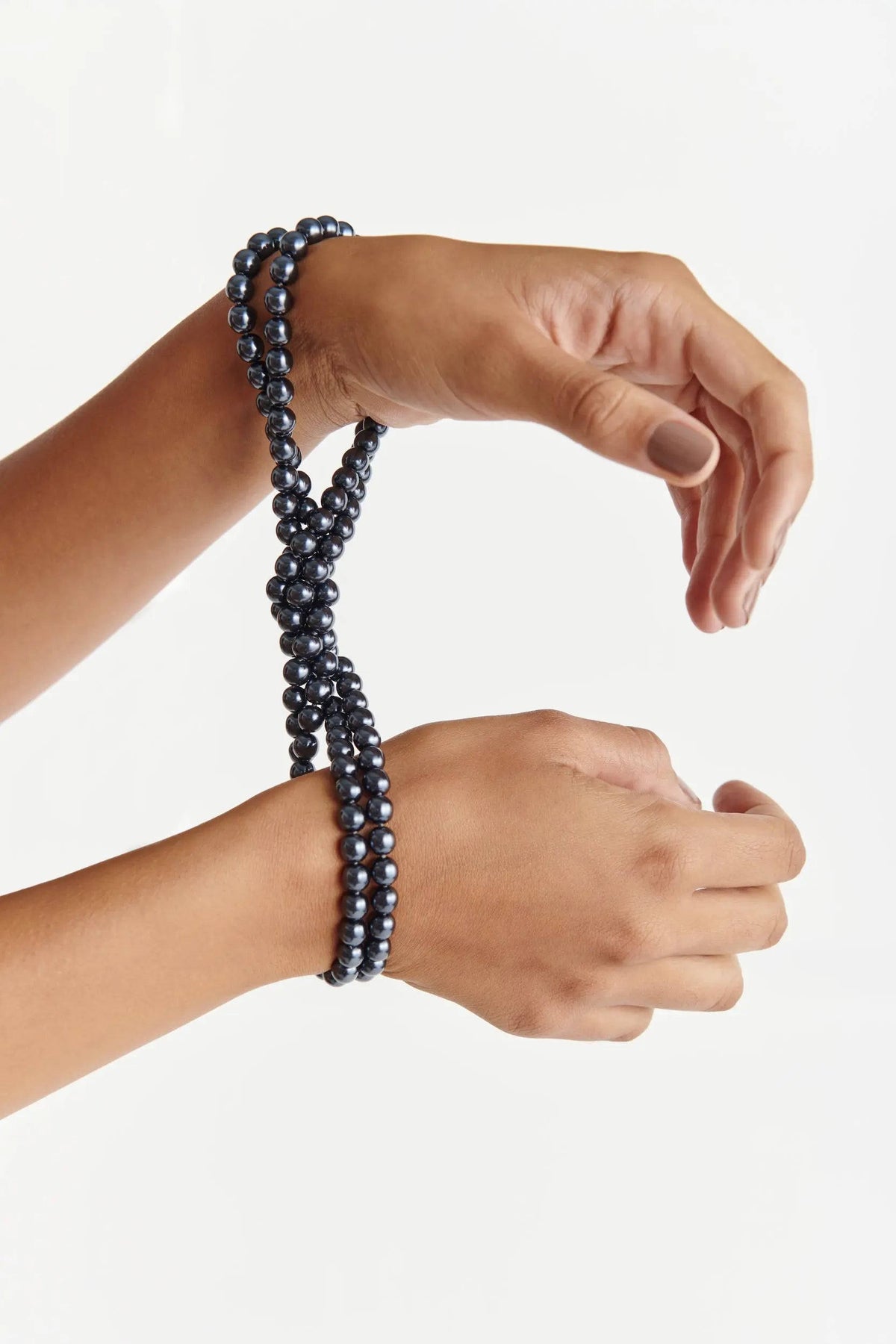 This Átame - Black accessory by Bracli is a perfect piece for both elegant style and playful exploration. Made with black glass pearls, it is a versatile item that can be worn as a necklace, bracelet, or cuffs. This unique and imaginative piece combines a classic look with a modern, daring spirit, allowing you to switch from a simple jewelry accessory to a more adventurous one.