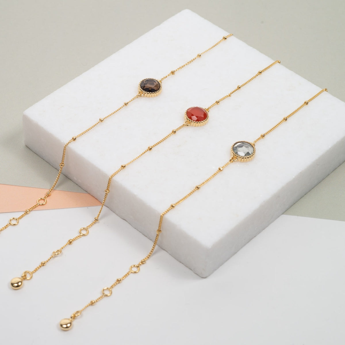 The Barcelona July Birthstone Bracelet by Auree Jewellery is a truly beautiful and pretty accessory. It features a vibrant orange Carnelian gemstone snugly nestled in a polished Gold Vermeil beaded setting. Carnelian is associated with boosting energy and stimulating creativity. This bracelet is highly sociable and loves to be shown off, making it a cherished addition to any collection.
