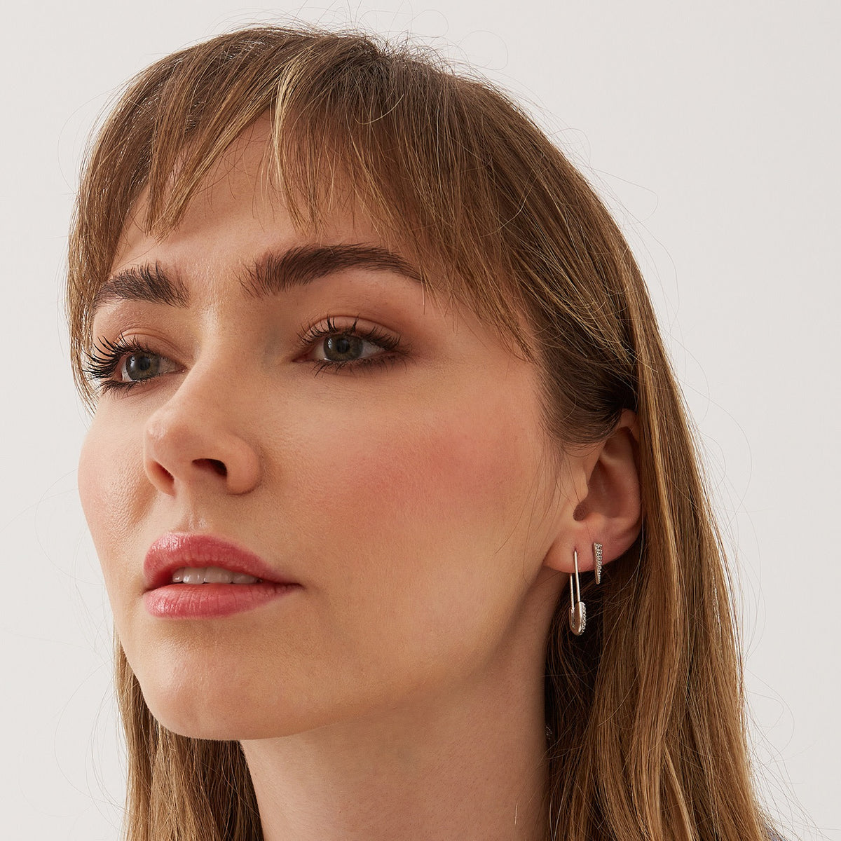 These studs are crafted from 925 recycled sterling silver and feature a dagger design paved with crystals. They have a post-back or screw-back lock.