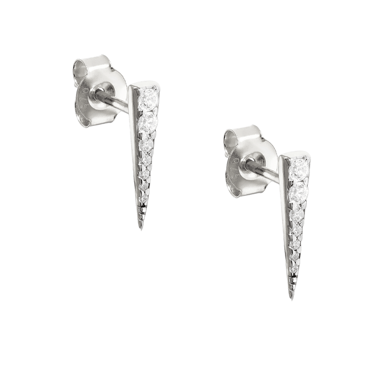 Long Pave Dagger Stud Earrings Sterling Silver - Silver