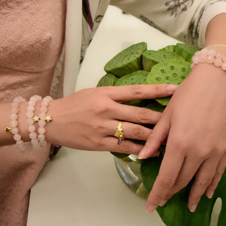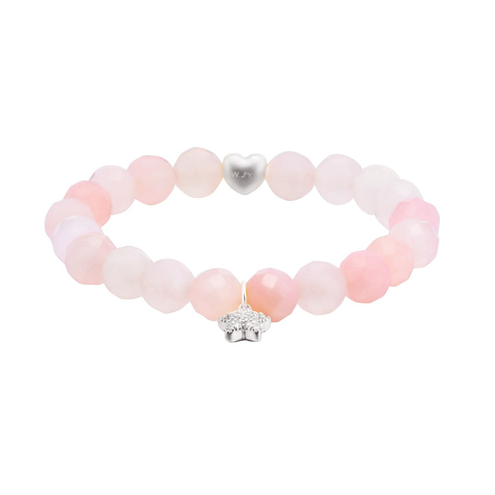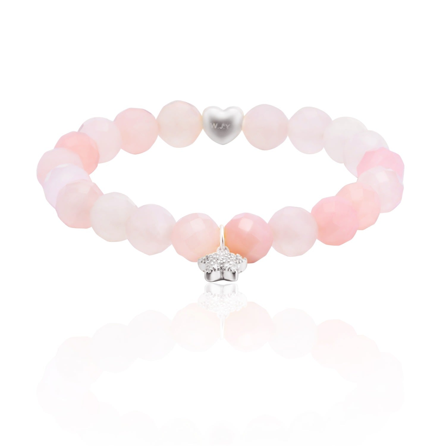 Natural Rose Crystal Love Stars White Silver Bracelet
