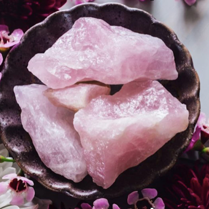 This bracelet is crafted from natural rose quartz crystal and silver.